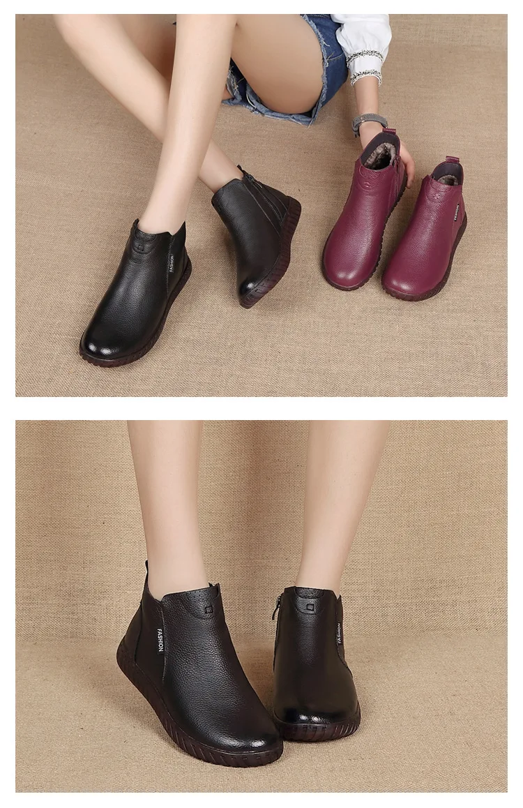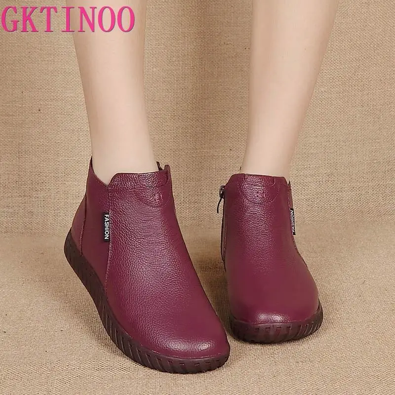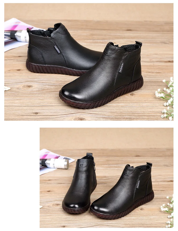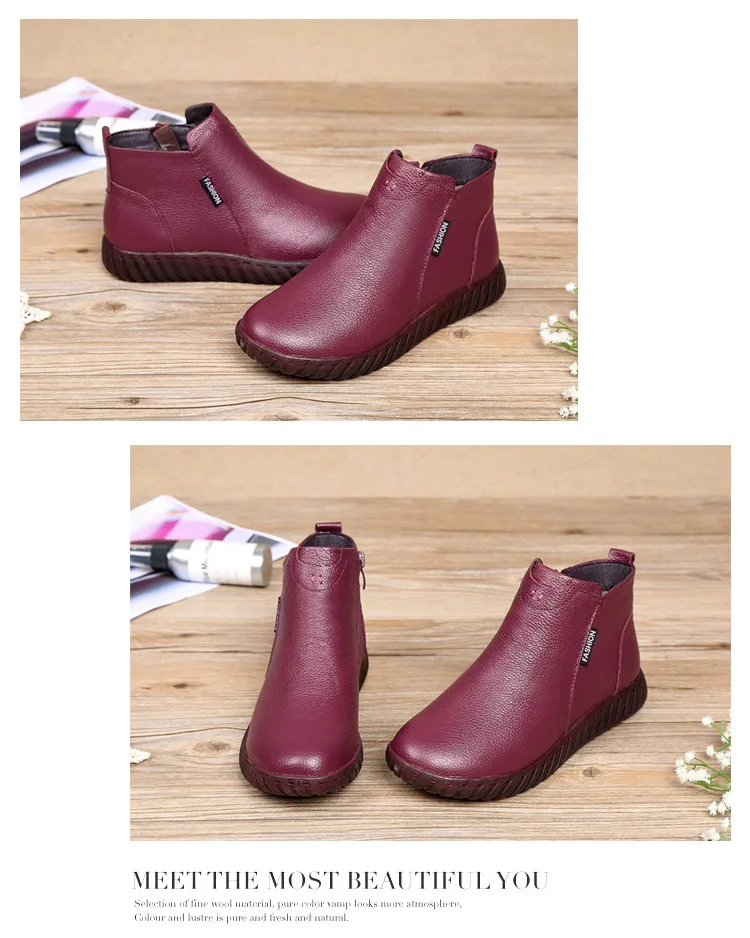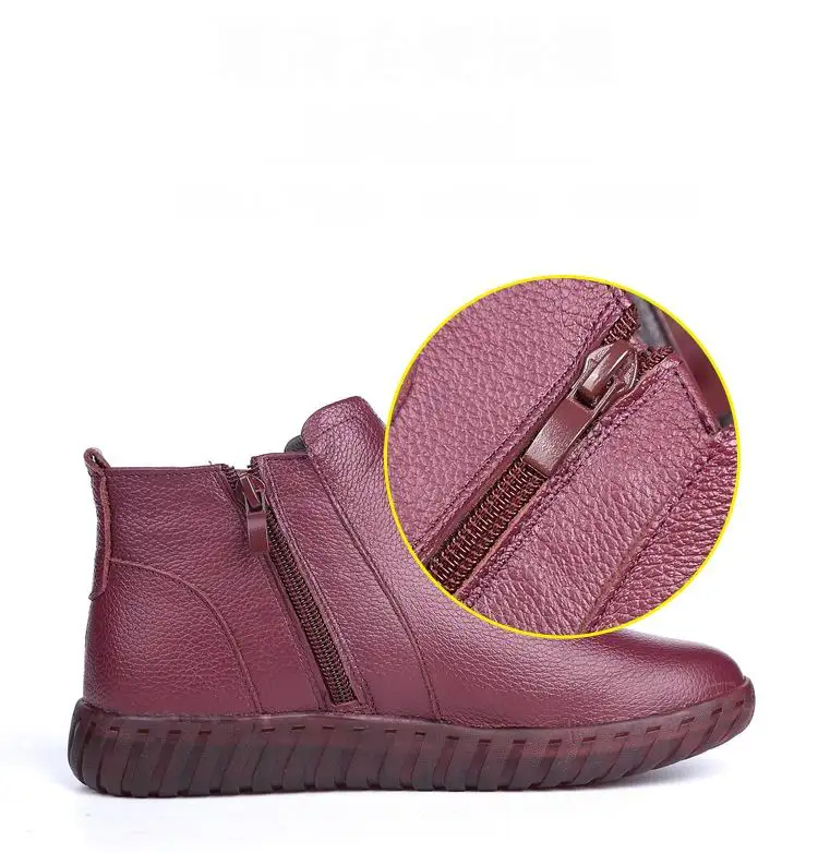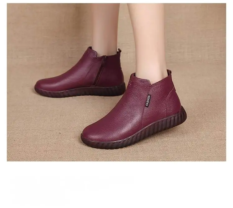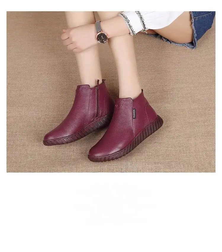 Ботинки женские из натуральной кожи, на плоской подошве, на молнии