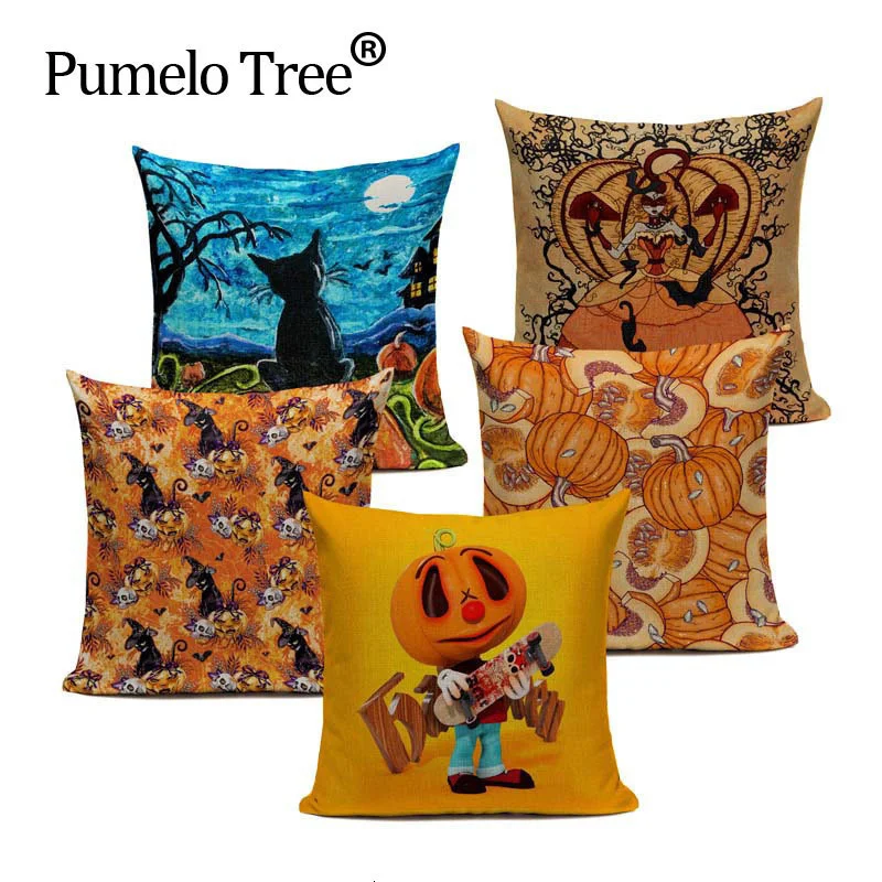 Счастливые подушки для Хэллоуина, чехол с изображением сердца тыквы, домашний декор, льняная Подушка, наволочки, декоративные автомобильные диванные подушки, чехол Cojin