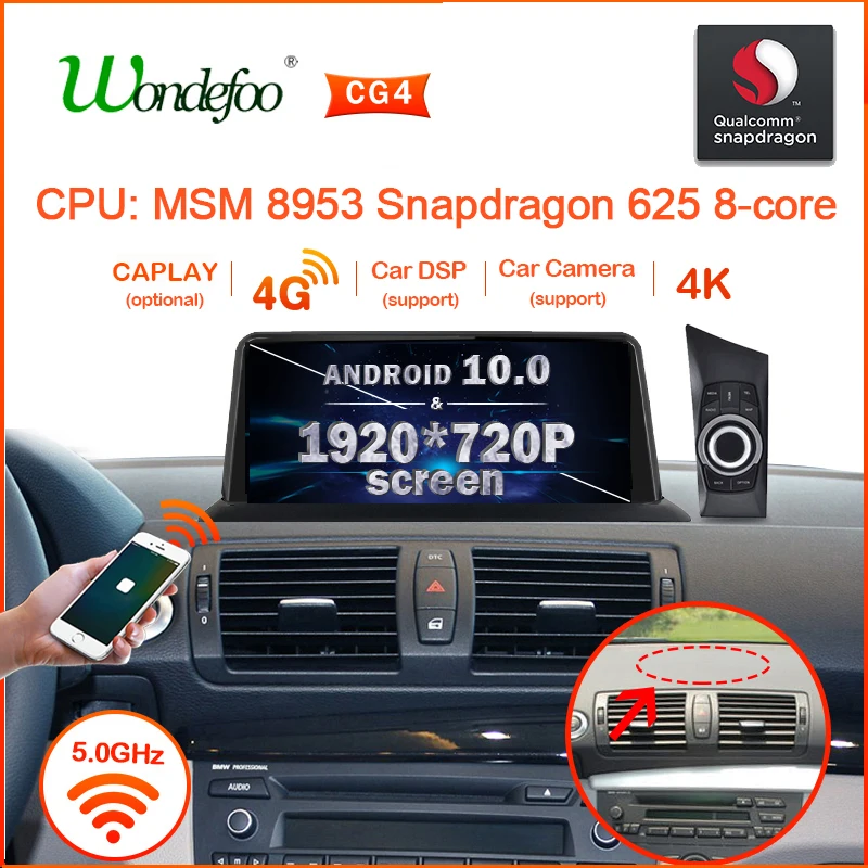 Автомобильный мультимедийный плеер Snapdragon, Android 10, экран 1920*720P, GPS, для BMW 1 серии 120i E87 E81 E82 E88, Радио Навигация, магнитола без DVD