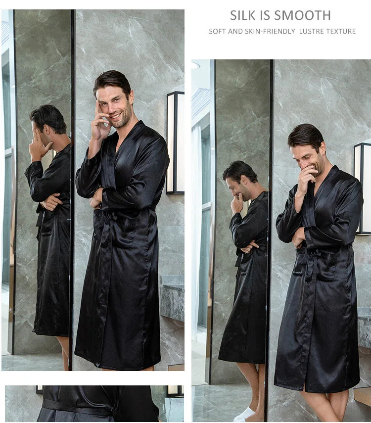 Однотонный черный халат для шафера XXL, Мужской Шелковый Атласный халат, летняя повседневная одежда для сна с V-образным вырезом, женское платье, халат для шафера