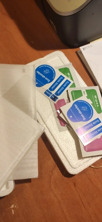 Хорошее прикрытие. Он поставляется с салфетками для очистки экрана и наклейками для удаления помпонов. Он также имеет жидкость, которую я не знаю, для чего он нужен. Но все отлично.