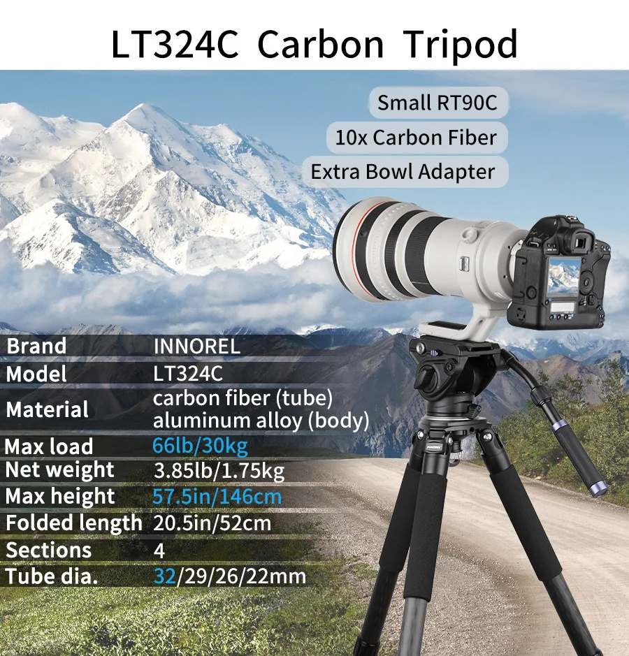 В посылка входит чехол для штатива, сумка для штатива, штатив LT324C, регулировочные инструменты и шипы из нержавеющей стали.
