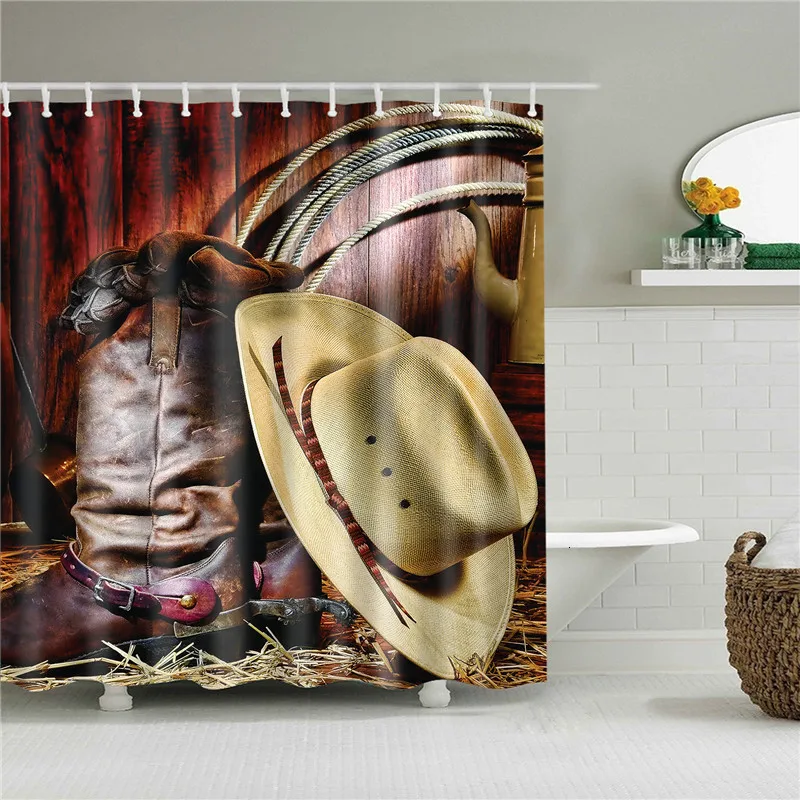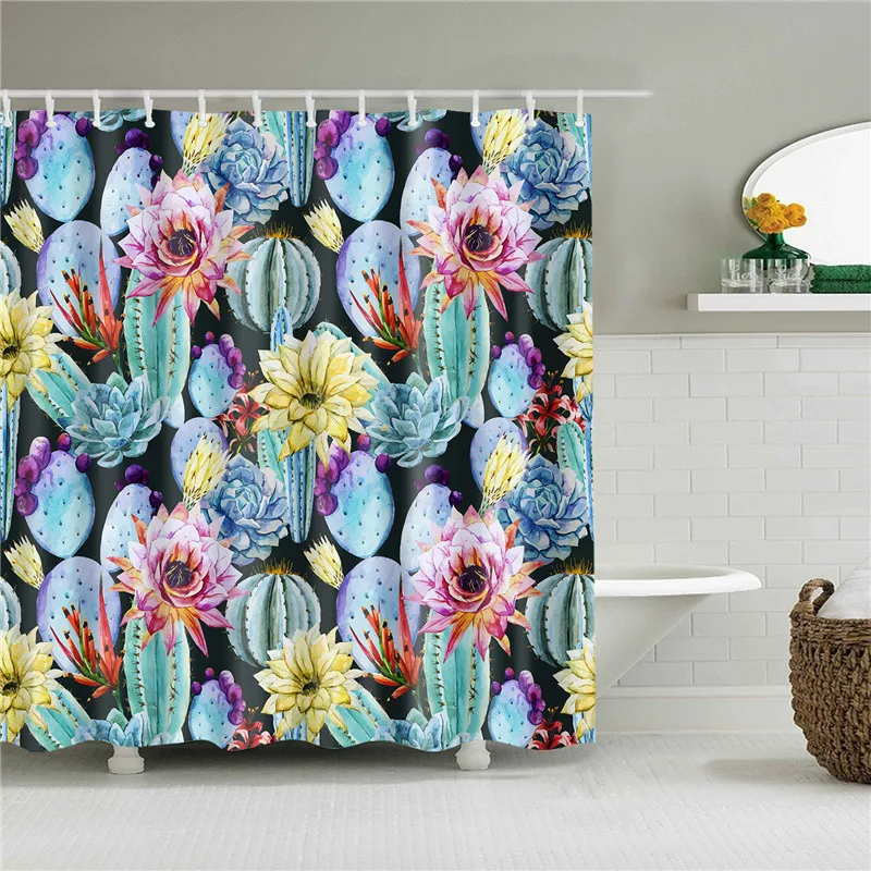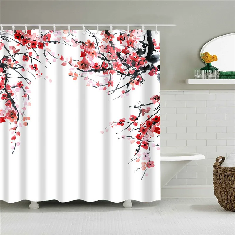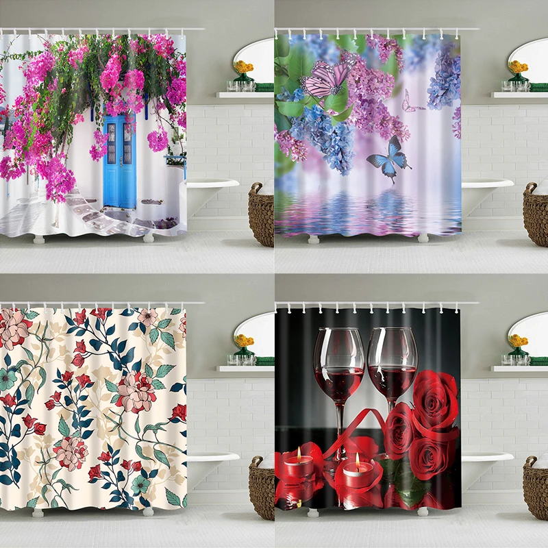 Занавеска для душа из полиэстера, водонепроницаемая, с цветочным принтом, с крючками