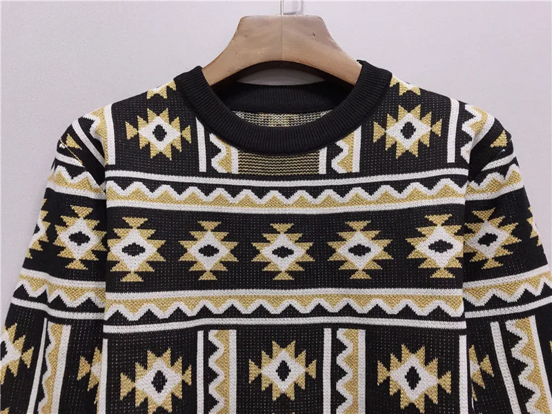 Женский жаккардовый вязаный костюм, свитер с длинным рукавом и юбка...