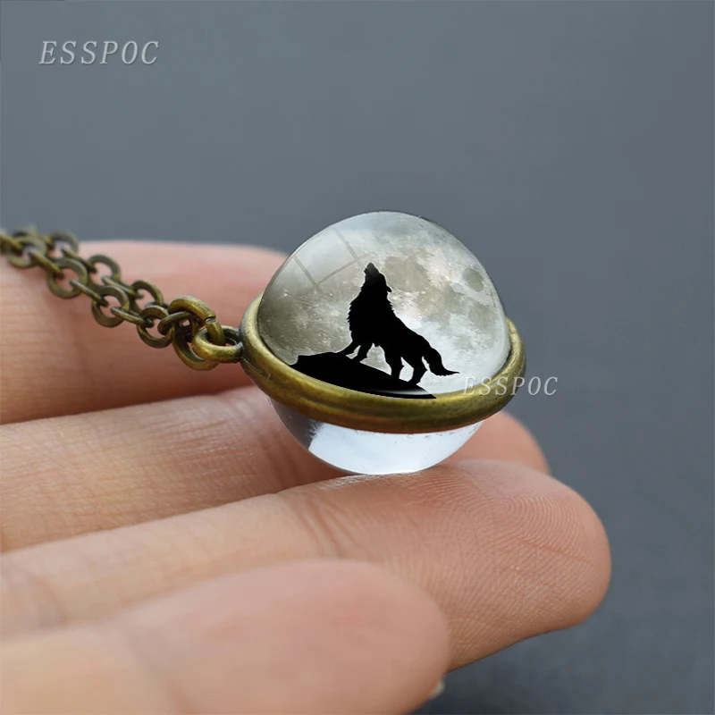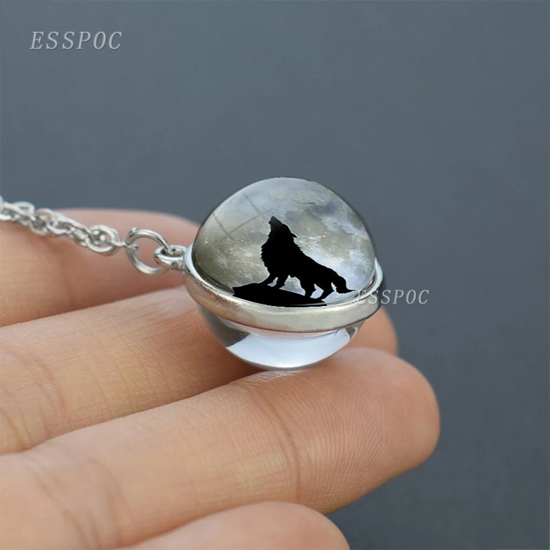Новое поступление, двухсторонняя подвеска в виде хрустального шара под луной, волк, подвеска, цепочка на свитер, ожерелье