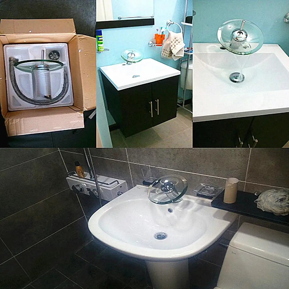 Настольный стеклянный водопад для ванной комнаты, кухонный кран для раковины, Круглый Водопад, хромированный кран для раковины, однорычажный кран с горячей и холодной смесью