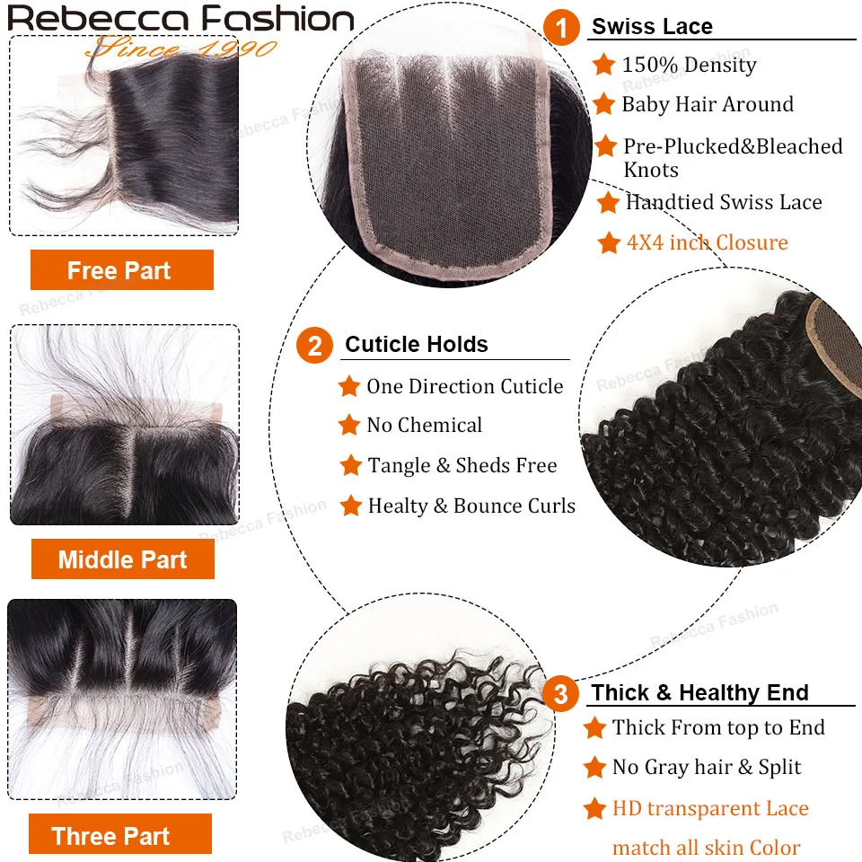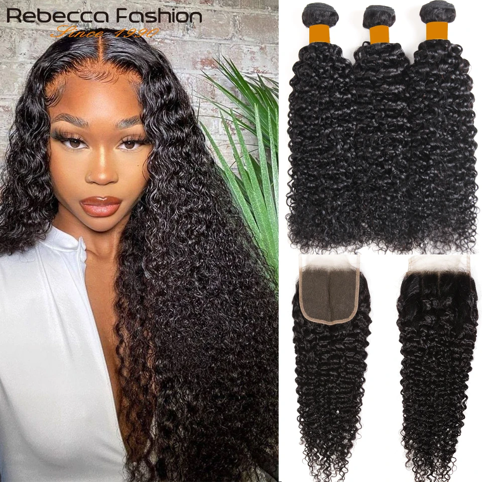 Курчавые вьющиеся пучки Ребекка с застежкой человеческие волосы 3 пряди с застежкой бразильские вьющиеся пряди волос с передней частью