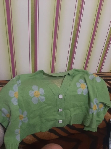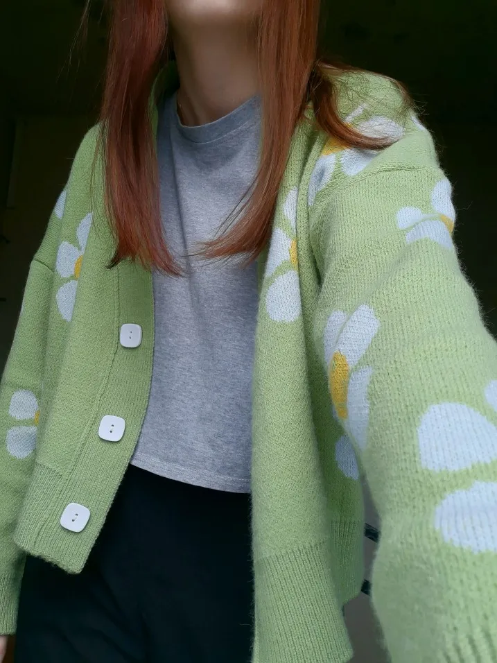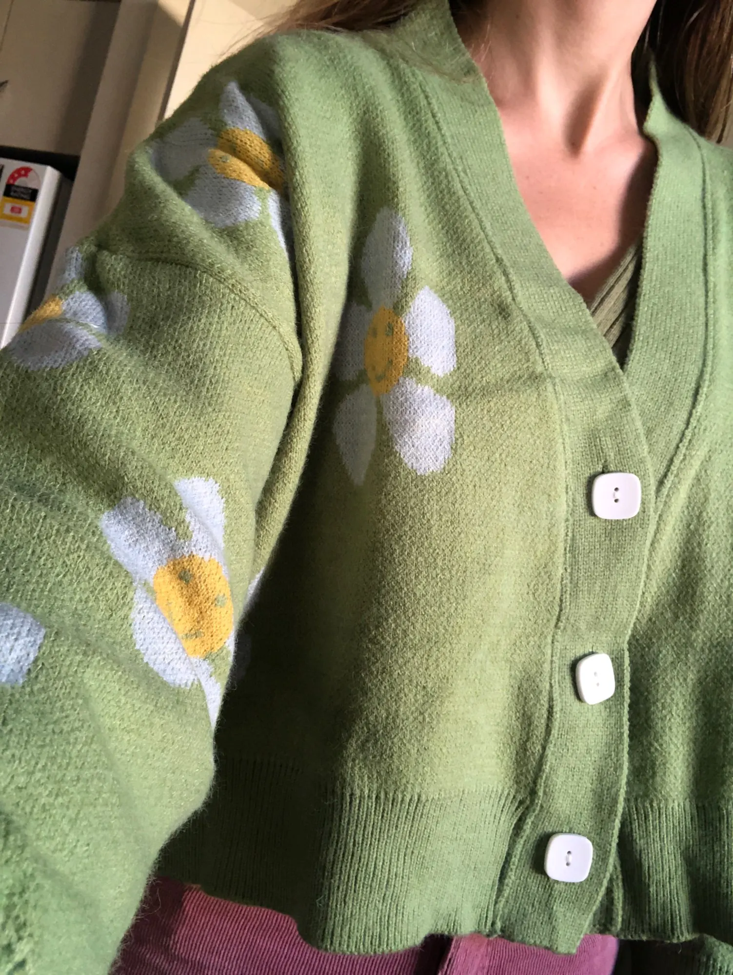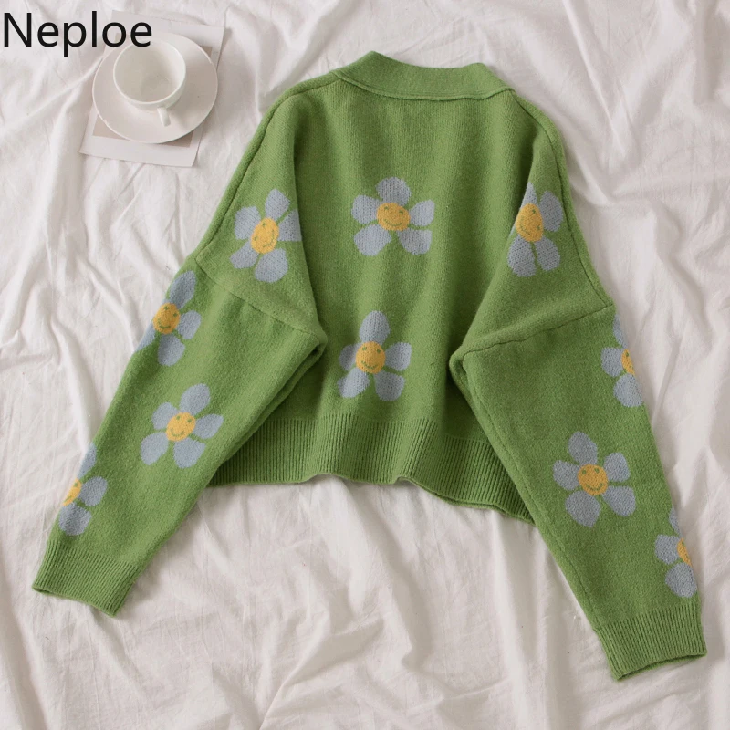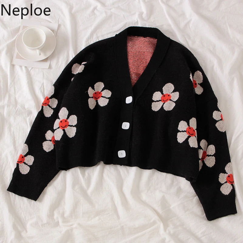 Кардиган Neploe Женский, вязаный, в стиле преппи, с цветочным принтом, с V-образным вырезом, свободный, элегантный, утепленный, короткий, Повседневный, 46565