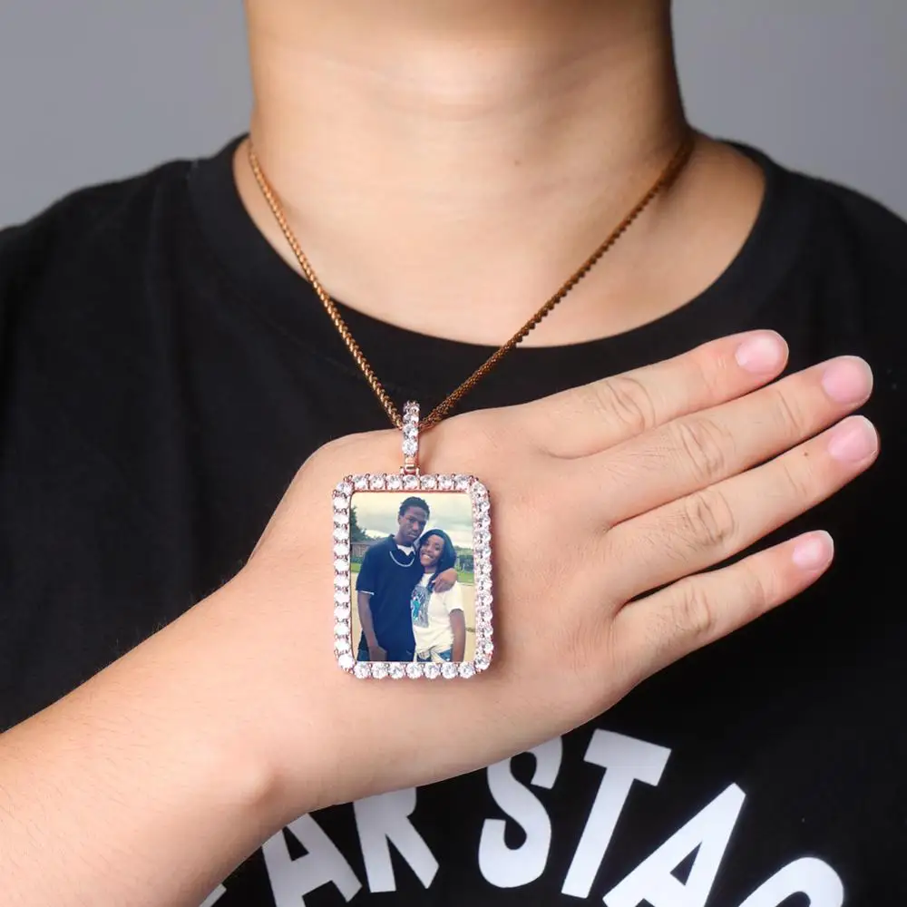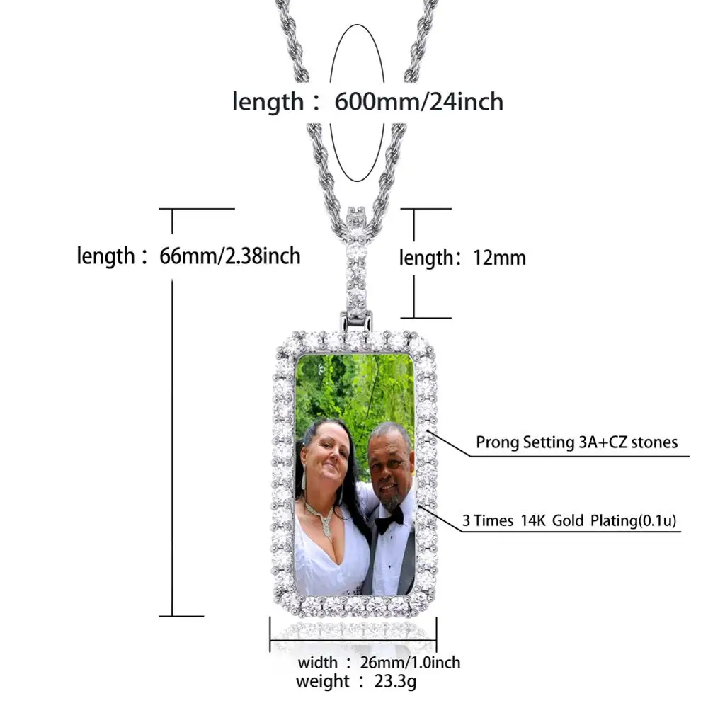 Ожерелье и кулон JINAO небольшого размера с квадратным фото, теннисная цепь 4 мм с кубическим цирконием класса ААА, Ювелирное Украшение в стиле хип-хоп, под заказ
