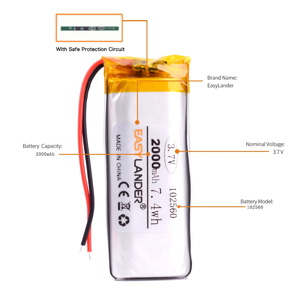 102560 3,7 в 2000 мАч литий-полимерный аккумулятор для переговорного телефона, GPS, DVR, транспортного средства, рекордер данных, Bluetooth динамик, секс-игрушки