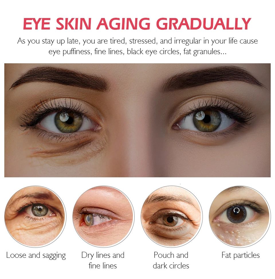 ❤Поднимите вверх Укрепляет кожу вокруг глаз, повышает эластичность ❤Успокаивает линии вниз Эффективно улучшает гусиные лапки и тонкие линии под глазами ❤Питают глаза Питает хрупкие глаза, комфорт и гладкость ❤Тусклый оттенок Улучшает тусклость вокруг глаз и снимает напряжение вокруг глаз