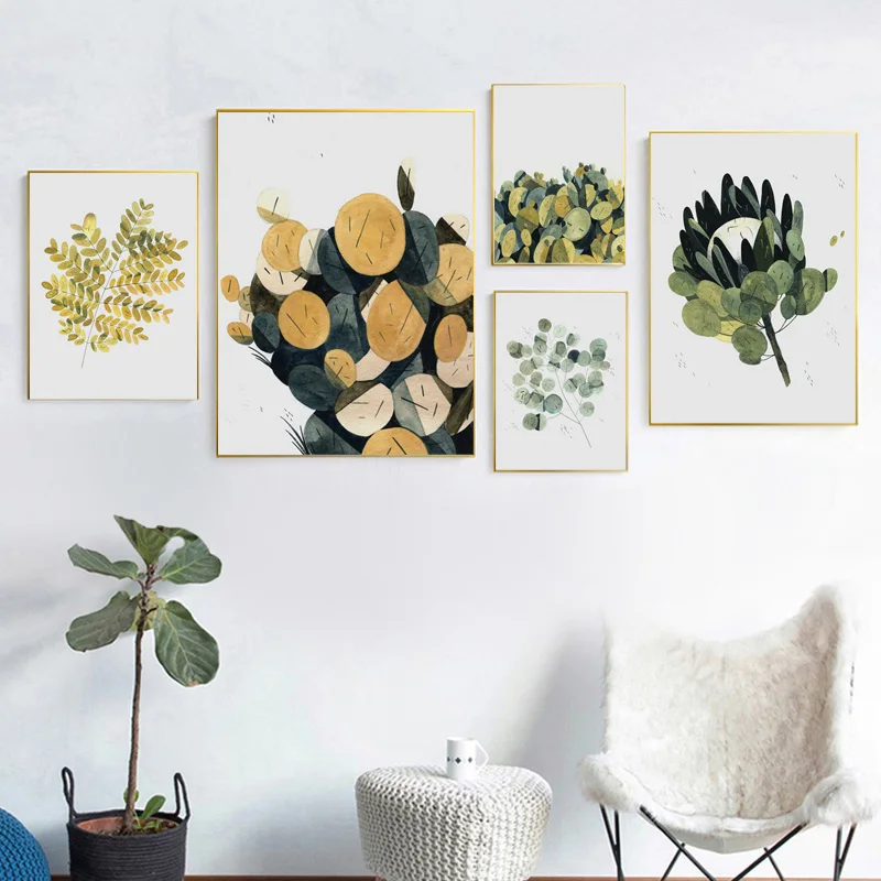 Настенная картина с изображением зеленых растений, монстера, кактус...