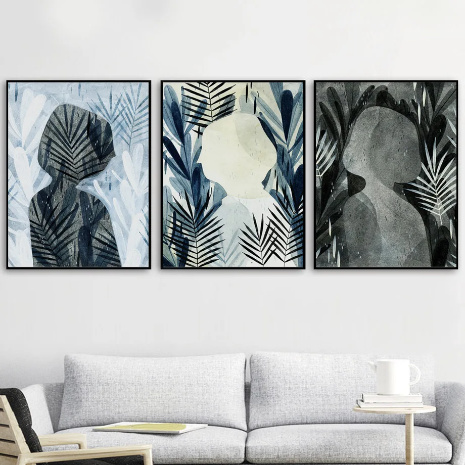 Абстрактная девушка, линия лица, листья, дерево Matisse, настенная ...
