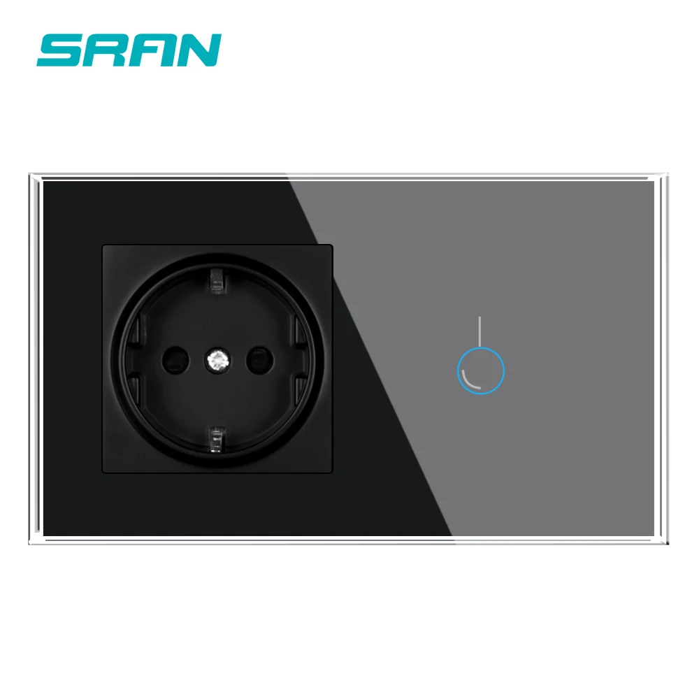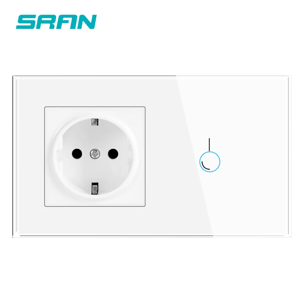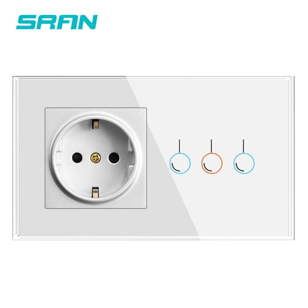 Сенсорный переключатель SRAN, панель из хрусталя, 110-250 В, 16 А, настенная розетка 146*86, светильник ключатель света, 123 канала