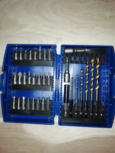 Не плохой набор оснастки,биты конечно не хром-молебден,но за полцены набора сойдет как походный. Биты сделаны качественно,никакого облоя,литье ровное,все четко,самые ходовые размеры. Сверла конечно вызывают сомнения,но по дереву думаю сойдут на какое-то время,когда под рукой ничего нет кроме них. В целом хороший набор,но только если брать с купонами продавца и почти за полцены.