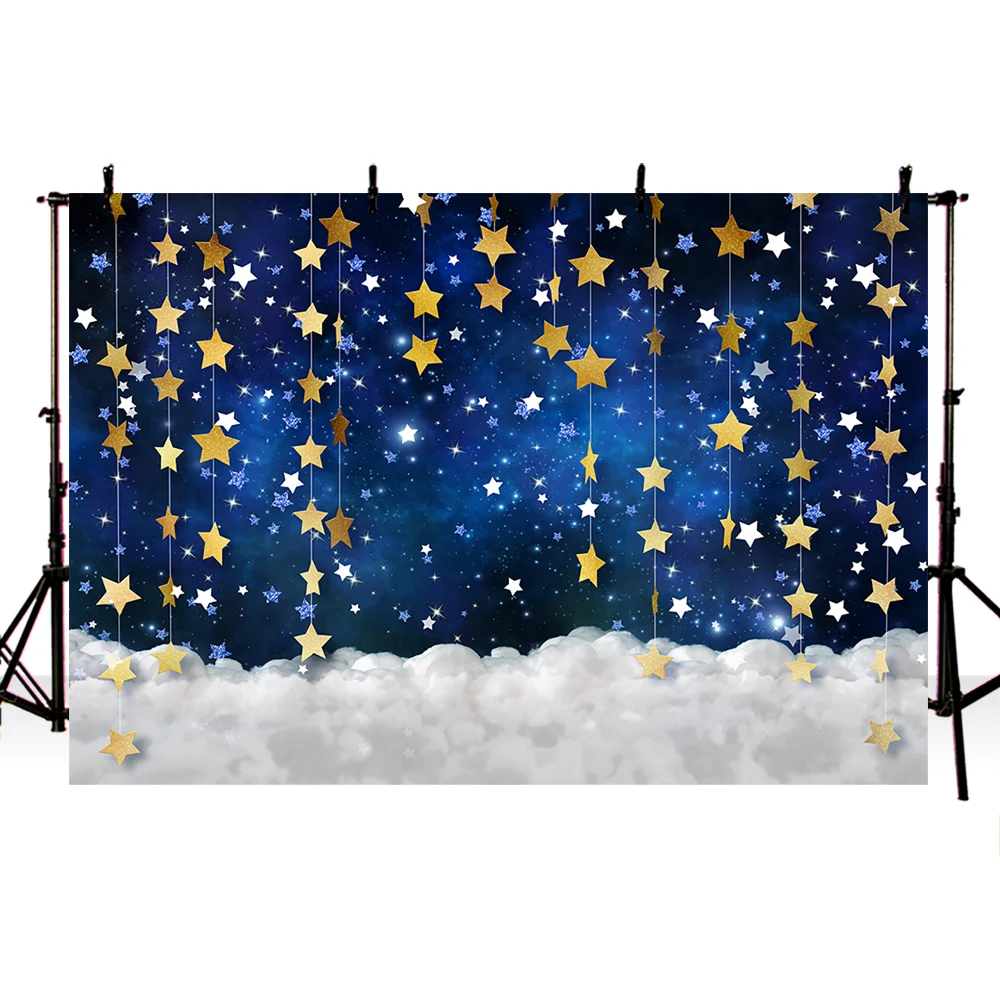 Фон для фотографирования новорожденных с изображением звезд и белых облаков