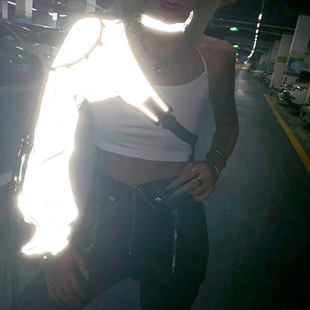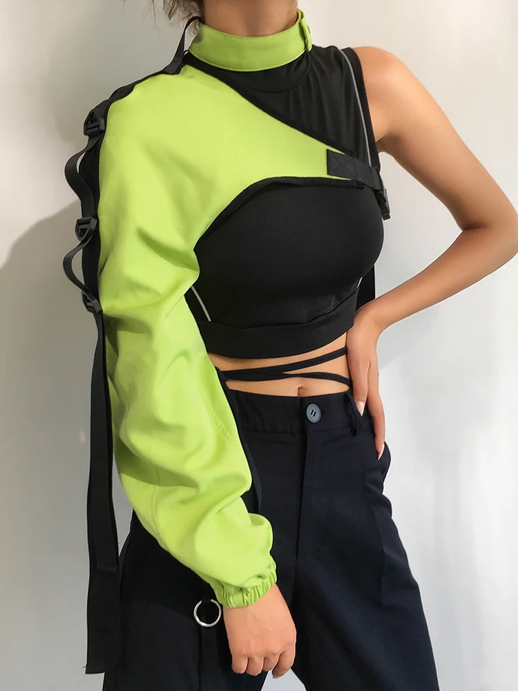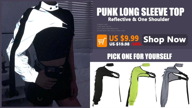 Женская Светоотражающая футболка Rockmore, неоновая футболка на одно плечо, в стиле Харадзюку, в стиле хип-хоп, Осень Топ в готическом стиле