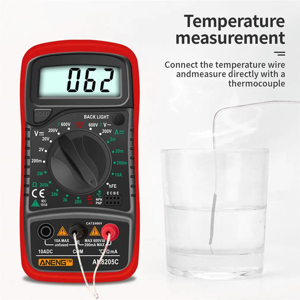 Цифровой мультиметр AN8205C, амперметр переменногопостоянного тока, вольт, Ом, тестер, измеритель, профессиональный мультиметр с термопарой, мультиметр с ЖК-дисплеем и подсветкой