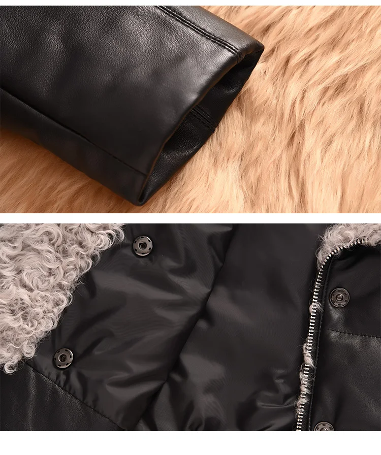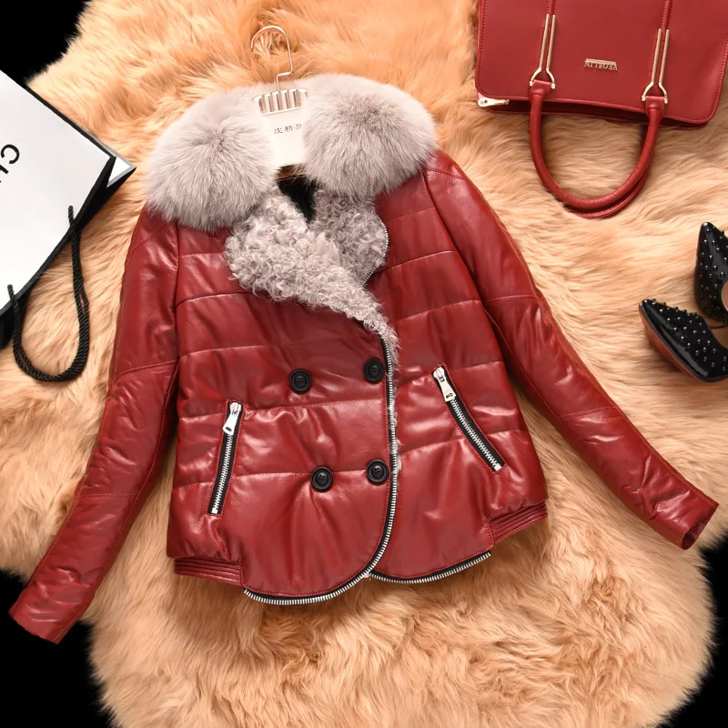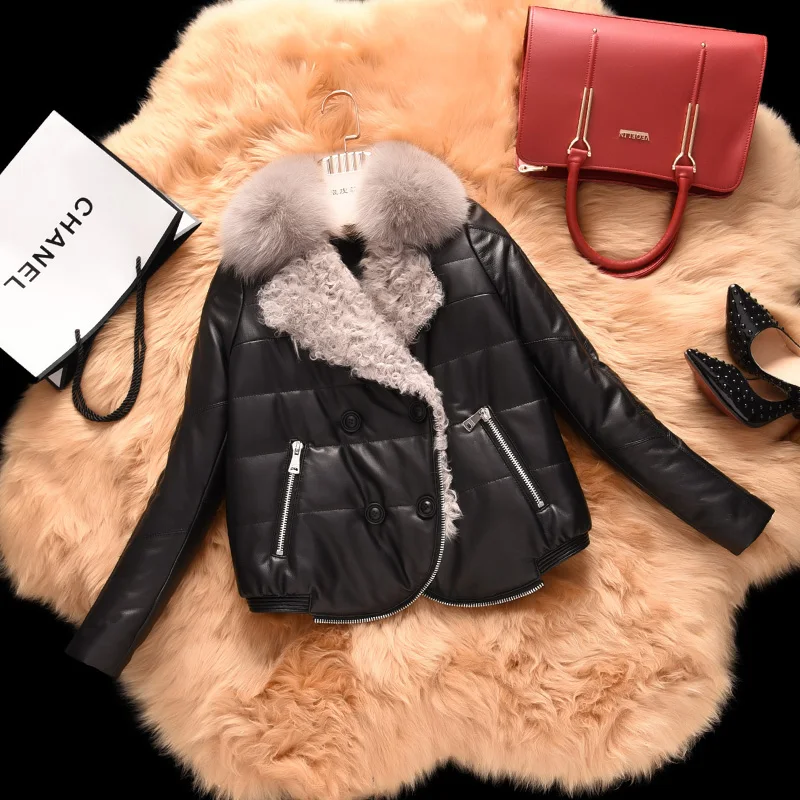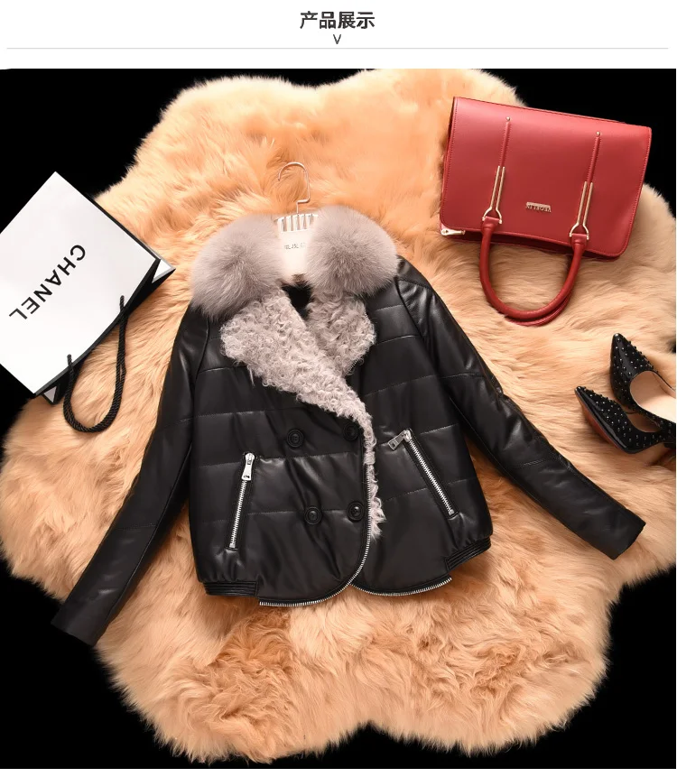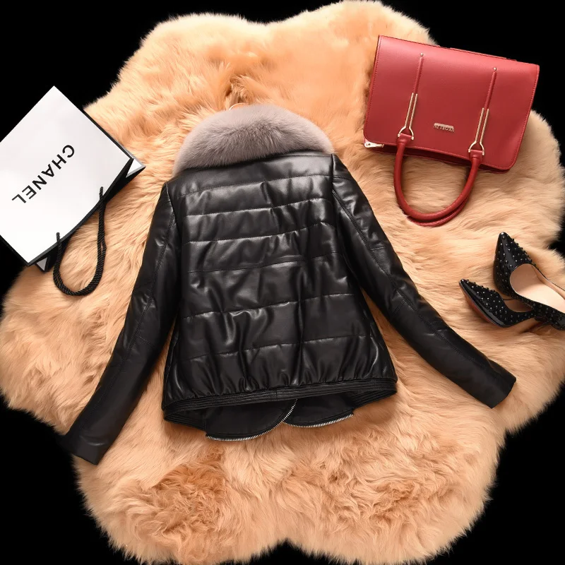 Куртка женская из натуральной кожи на белом утином пуху, с воротником из лисьего меха, 5072M01