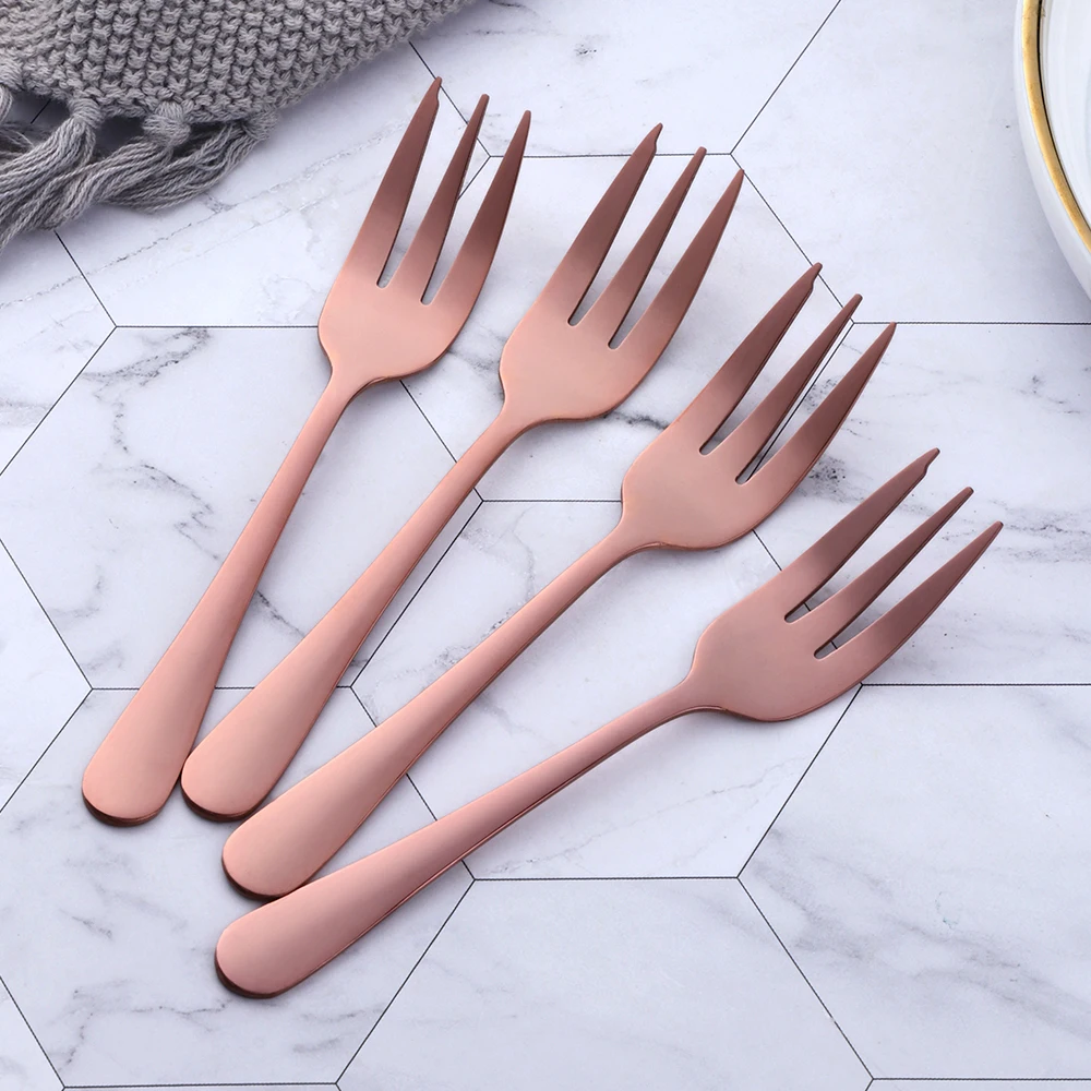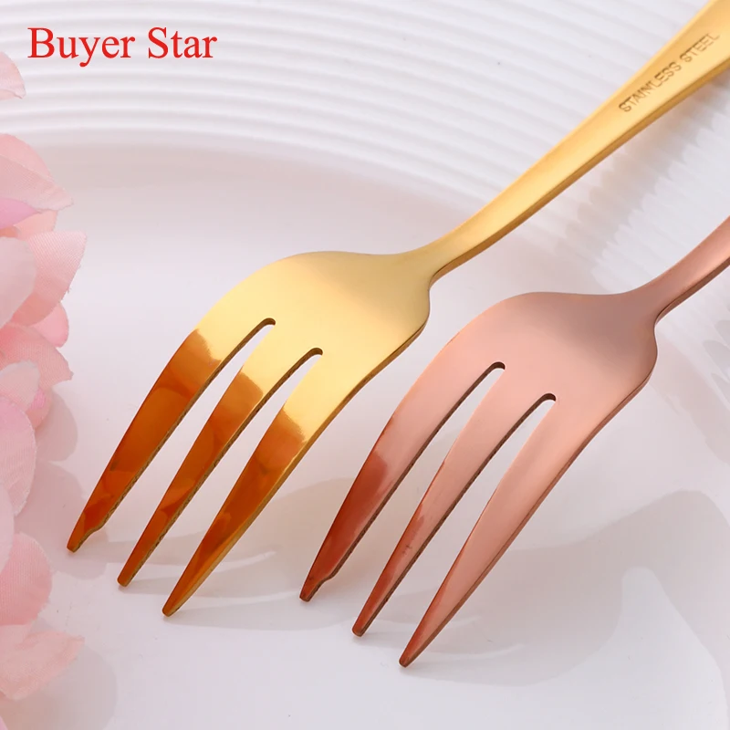 4 шт.лот набор из нержавеющей стали с маленькими фруктовыми вилками, набор золотых салатов для еды, набор из трех зубчатых вилок для десертов, столовая посуда, вечерние наборы для ресторанов