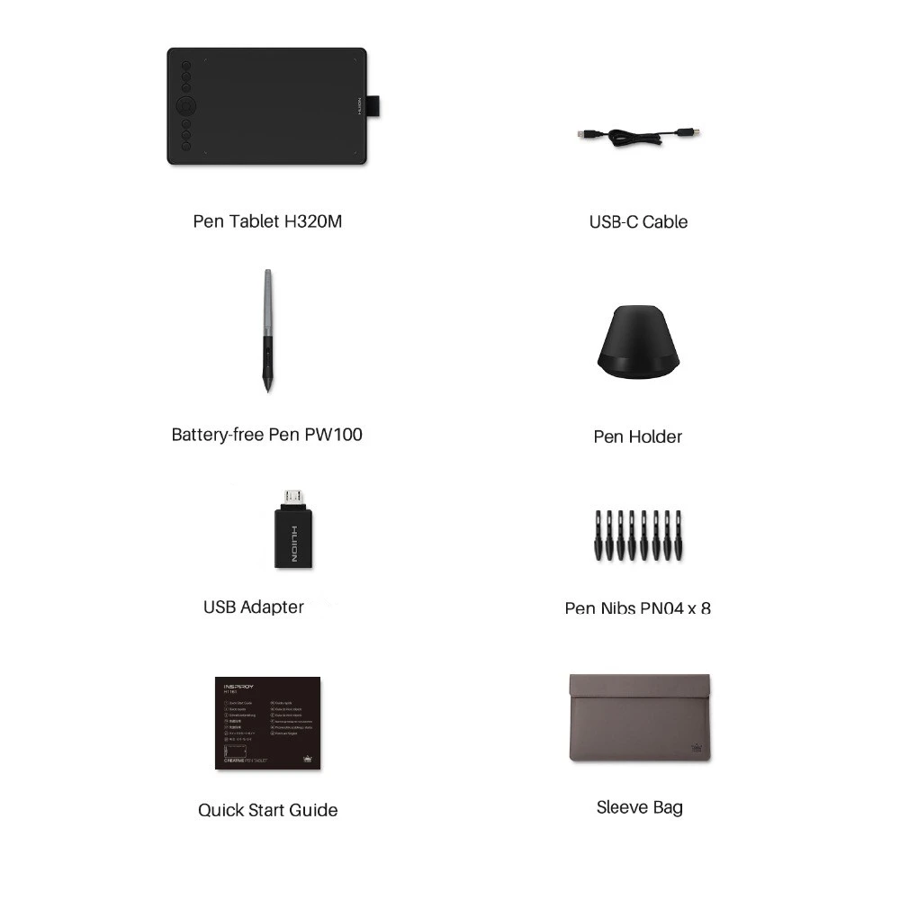 Графический планшет HUION H320M для рисования, ЖК-планшет для письма для детей, планшет для подписи, 8192 уровней, цифровой стилус