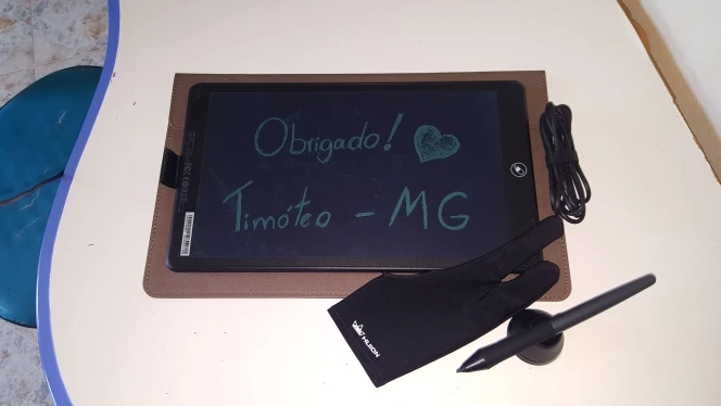 Купил в качестве рождественского подарка, выбрали доставку из Бразилии и прибыл очень быстро. На столе, хороший, не имеет большого знания в области, так как это мой первый планшет, или графический планшет, как описано в рекламе, но оказался действительно очень хорошим. Внутри коробки ручной, шарф для очистки стола (believe), 2 адаптера (micro-USB и Type-C) кабельного соединения, перчатка, держатель ручки с 8 наконечниками внутри ручки (без батареи) и самой таблицы. Сумка для планшета поставляется отдельно, но в той же упаковке. Контакт с продавцом () был хорошим, несмотря на то, что я на английском языке, было сообщено о том, что мне нужно, где я ответил на лакомства, которые появились (перчатка, заостренный носок, сумка), не говоря уже о том, что получил купон со скидкой также✌. Наконец, я не пожалел о покупке. 5 звезд для товара, для хранения и для офиса, которые дали мне вовремя!