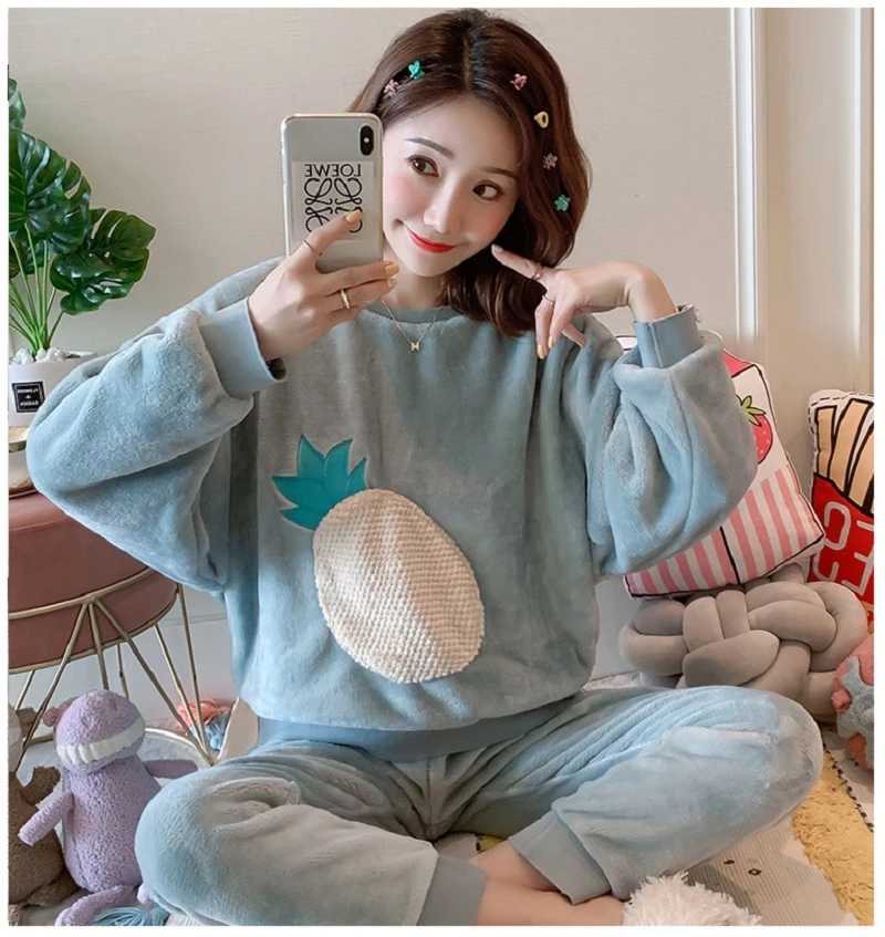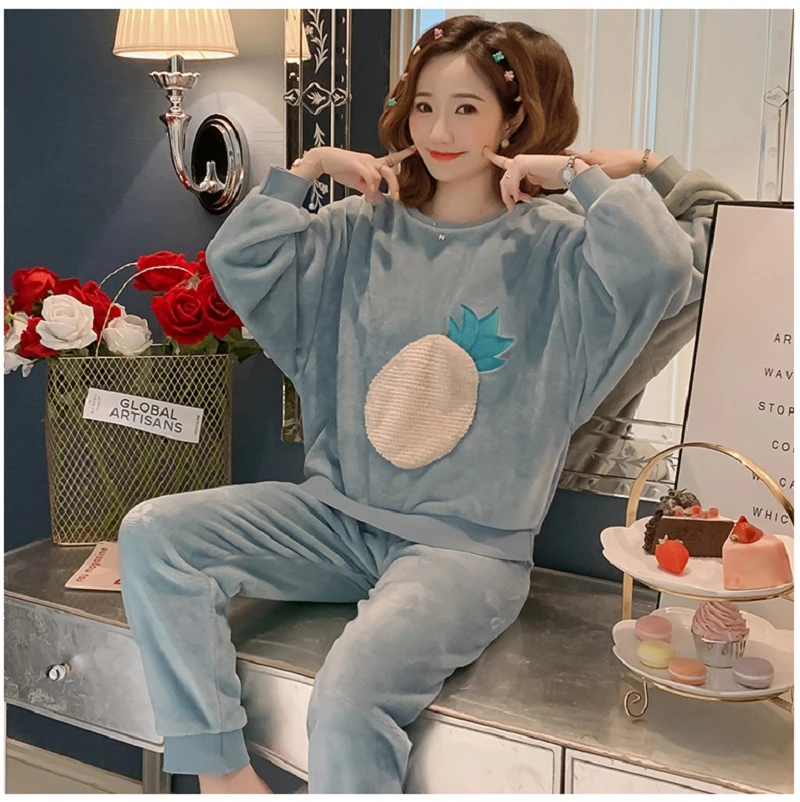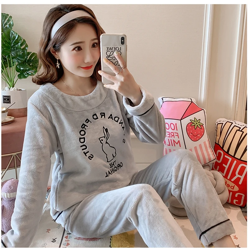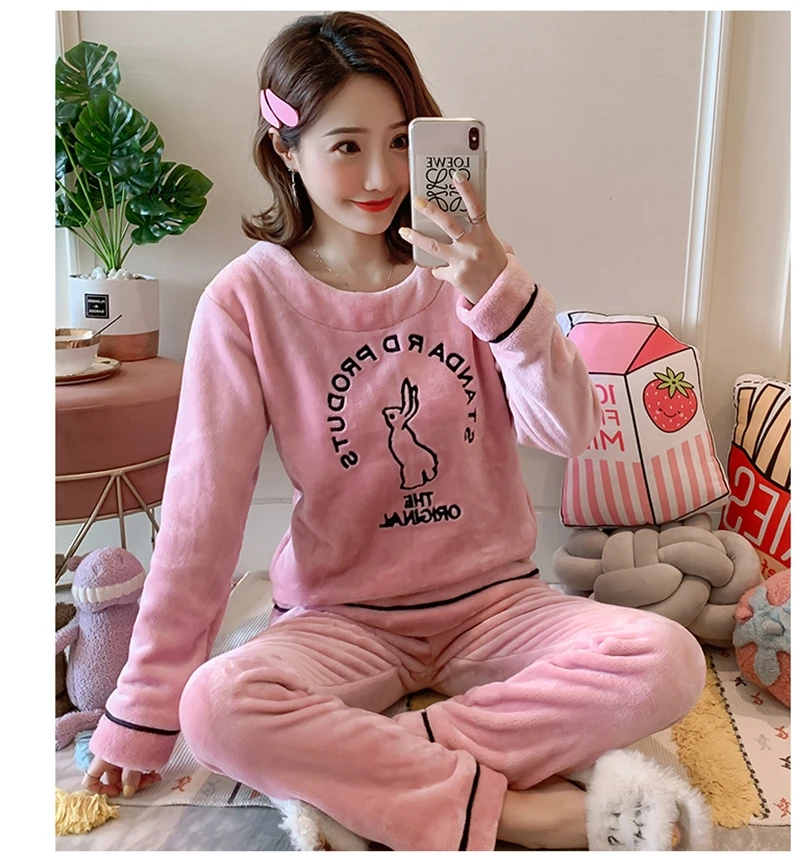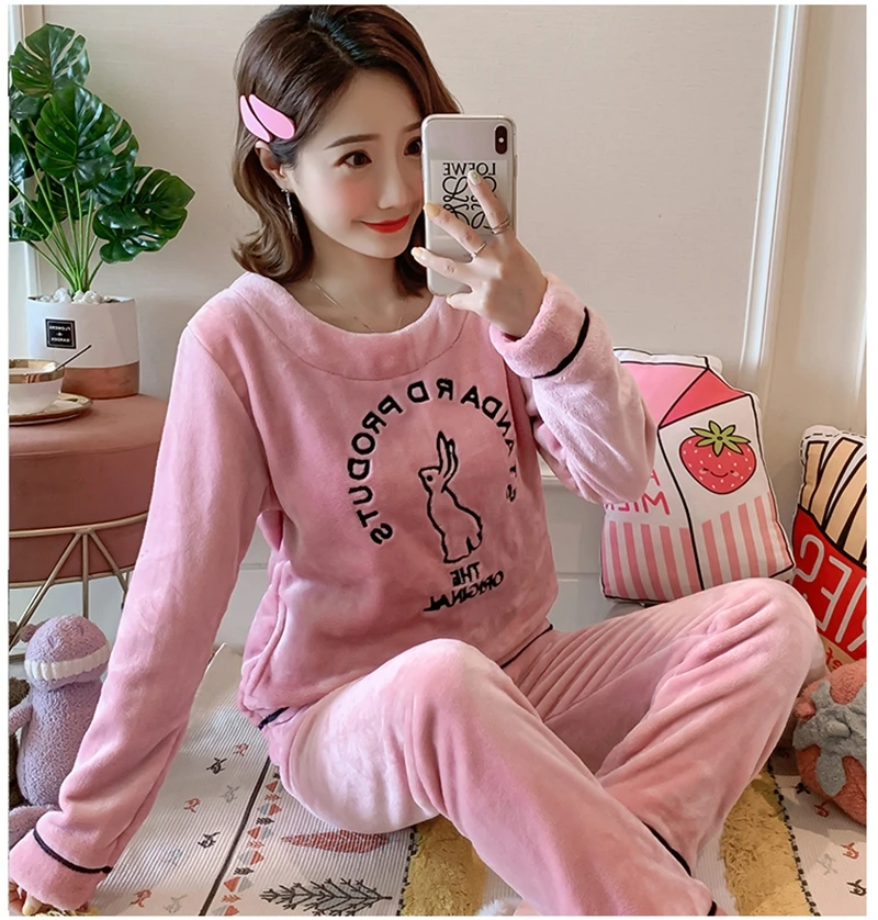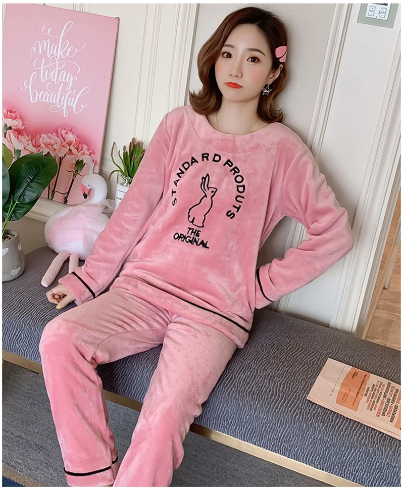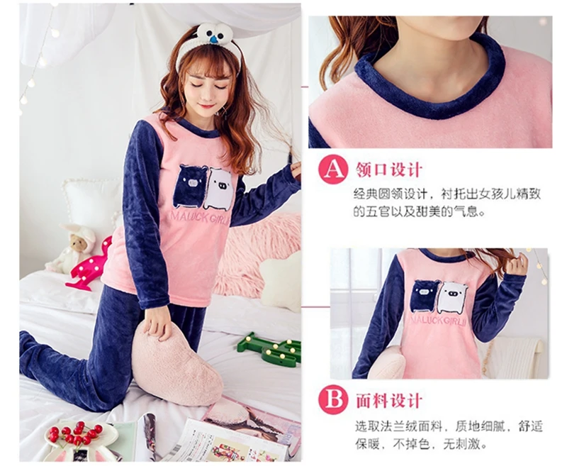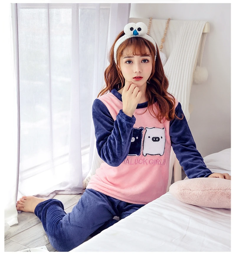 Зимние пижамные комплекты, женская одежда для сна, теплая Фланелевая пижама с длинными рукавами, Розовая домашняя одежда с милыми животными, плотный домашний костюм, пижама с героями мультфильмов