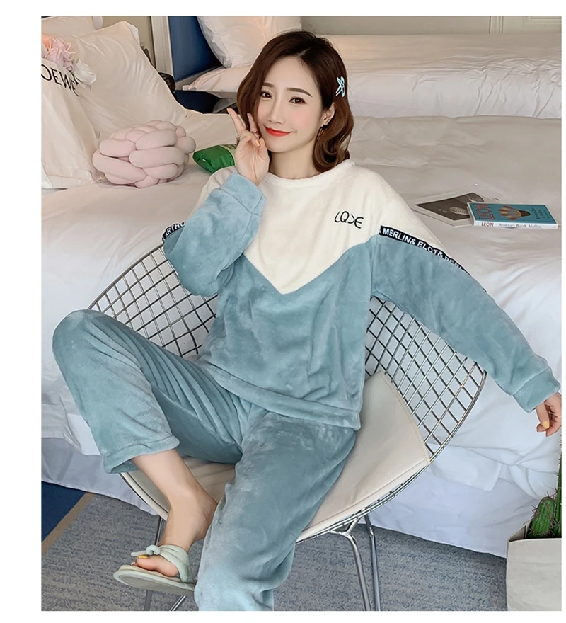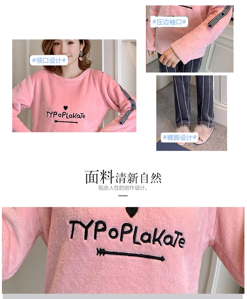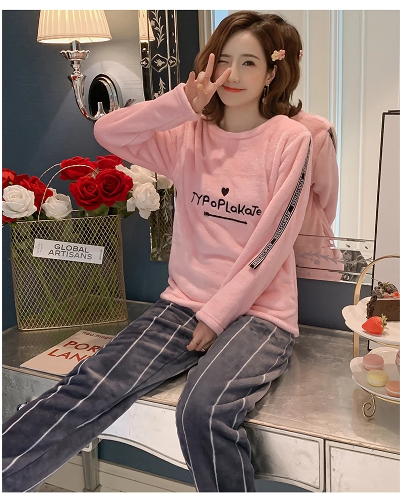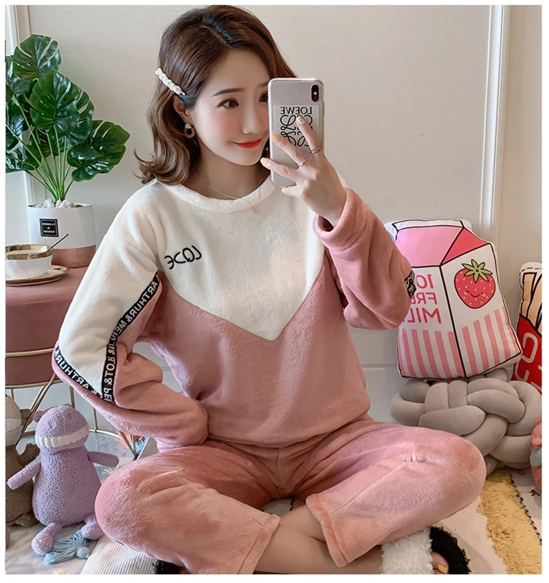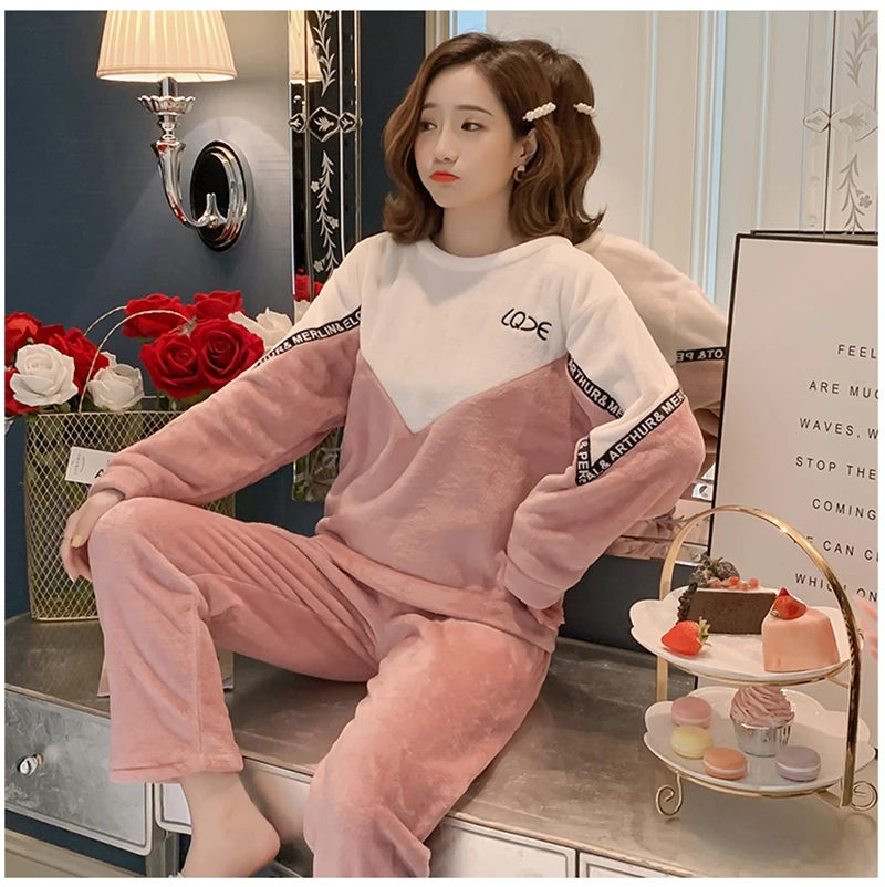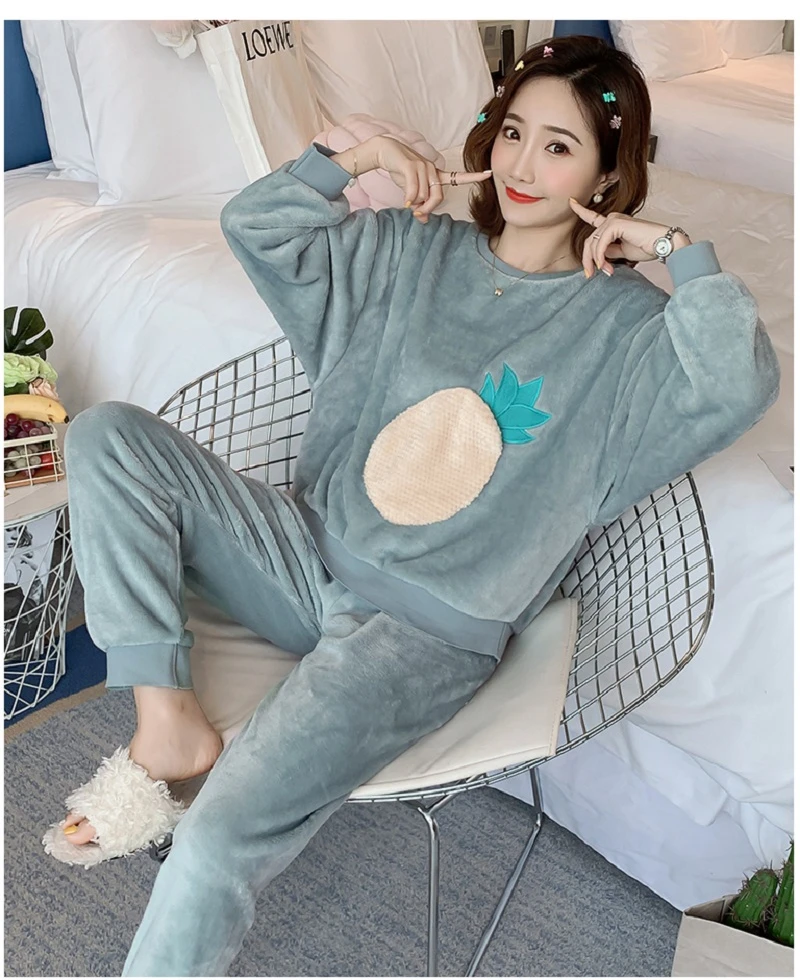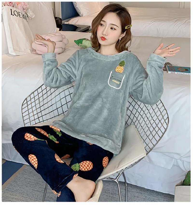 Зимние пижамные комплекты, женская одежда для сна, теплая Фланелевая пижама с длинными рукавами, Розовая домашняя одежда с милыми животными, плотный домашний костюм, пижама с героями мультфильмов