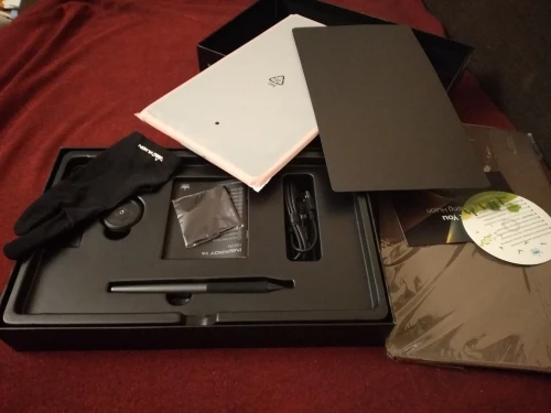 приехало по Москве на второй день, курьер на руки. коробка в целом выглядит прилично, заклеено. внутри все упаковано, целое. попробовал поработать, с обоих сторон все ок. на компе в SAI, Krita все отлично, нажим реагирует, кнопки действуют. в GIMP по умолчанию нажим не работает, но возможно просто разобраться надо. как мышка тоже отлично и удобно. рабочая поверхность вполне - на столе занимает немного места, чуть больше может как стандартный коврик для мыши и при этом более чем достаточно по площади, хватает на экран с запасом даже. ПО ставится легко, все настраивает и понятно. Вторая сторона тоже работает хорошо, без компа можно простые рисунки и схемы рисовать. Единственное, кнопка стирания нажимается очень легко и реагирует быстро. В остальном - удобно. В комплекте все как положено, планшет, провод, перо с подставкой и запасными наконечниками, перчатка, салфетка. Чехол положили ! Прикольный кстати.