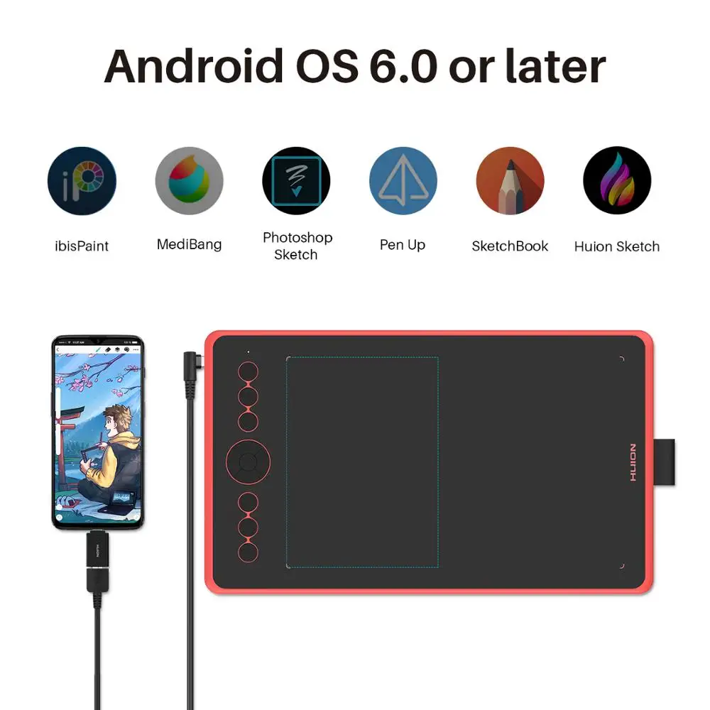 Планшет для рисования Huion H320M, цифровой планшет для рисования с 11 горячими клавишами, блокнот для письма со стилусом без батареи, 8192 Лев