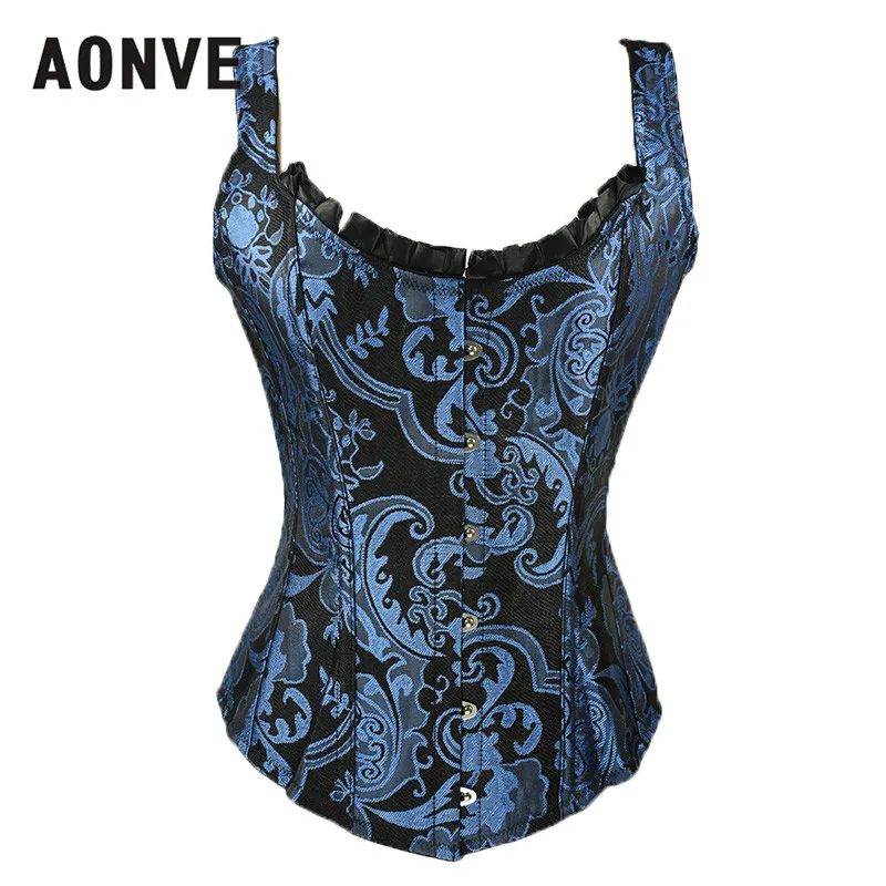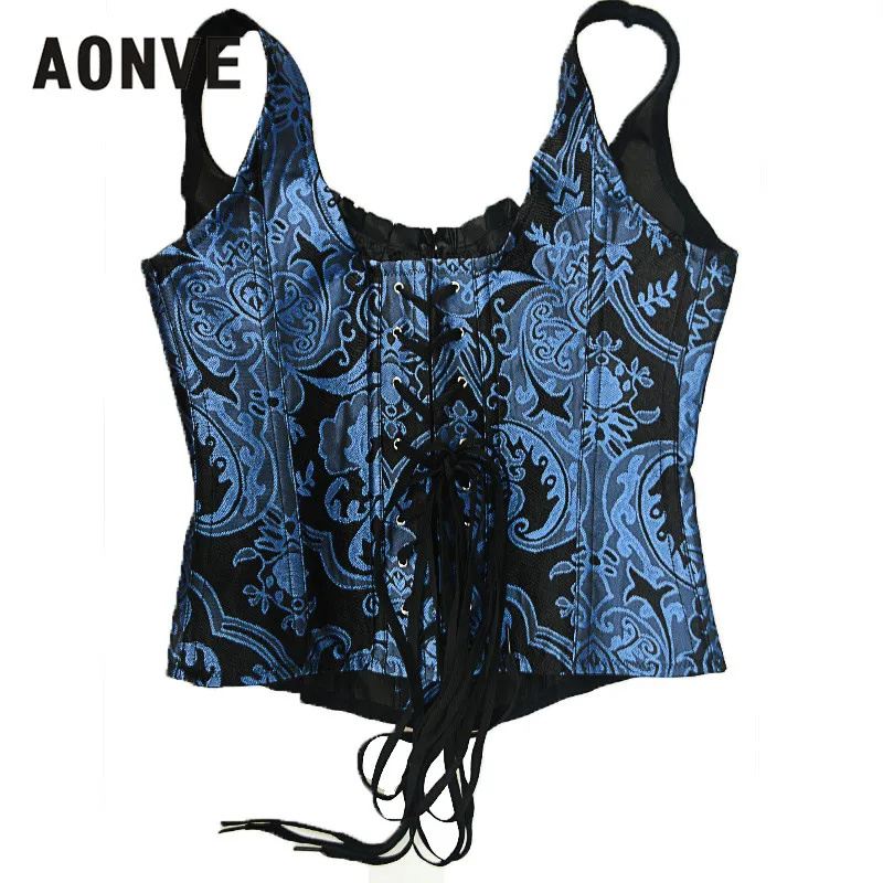 Синий корсет Aonve, топ, бюстье в стиле стимпанк, винтажный корсет, готический корсет со стальными косточками, женский сексуальный костюм