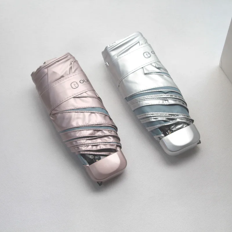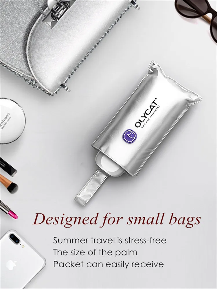 OLYCAT складной портативный титановый Серебряный мини-зонтик для детей и женщин с защитой от ветра и УФ-защитный карман