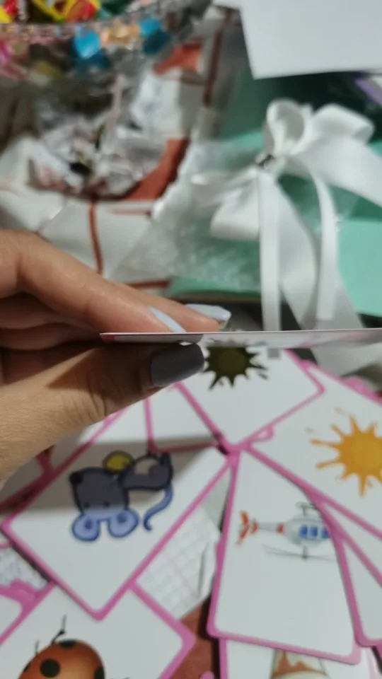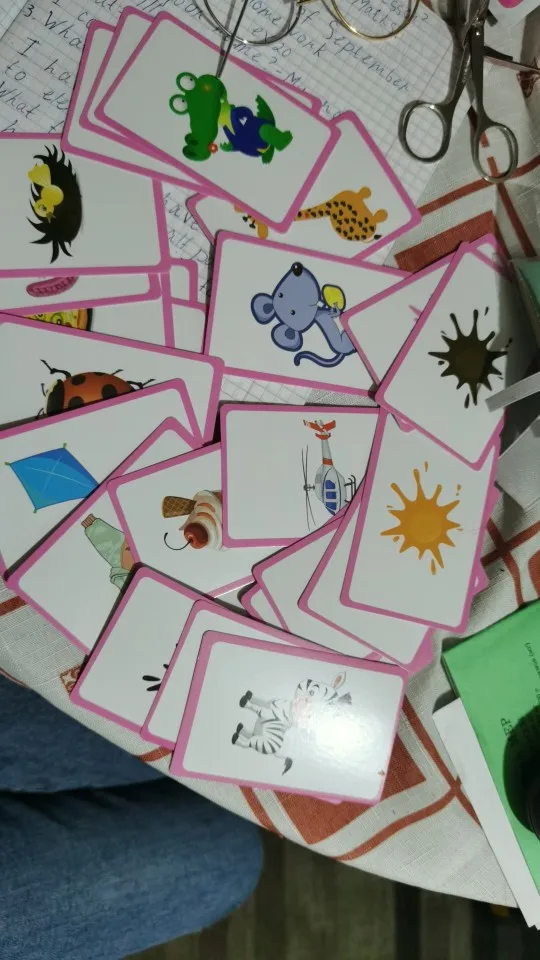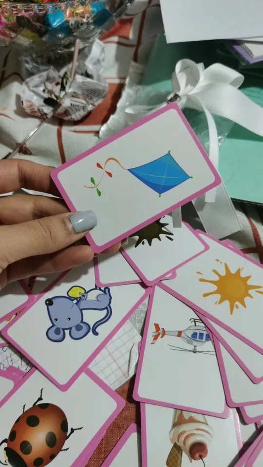 The cards are cartoons, I hoped that it’s plastic so my kids doesn’t damage it. But overall it’s good product as it got colors cards and shapes very nice for teaching