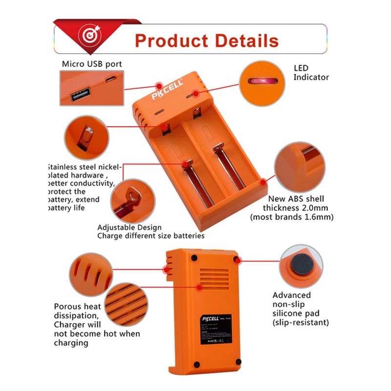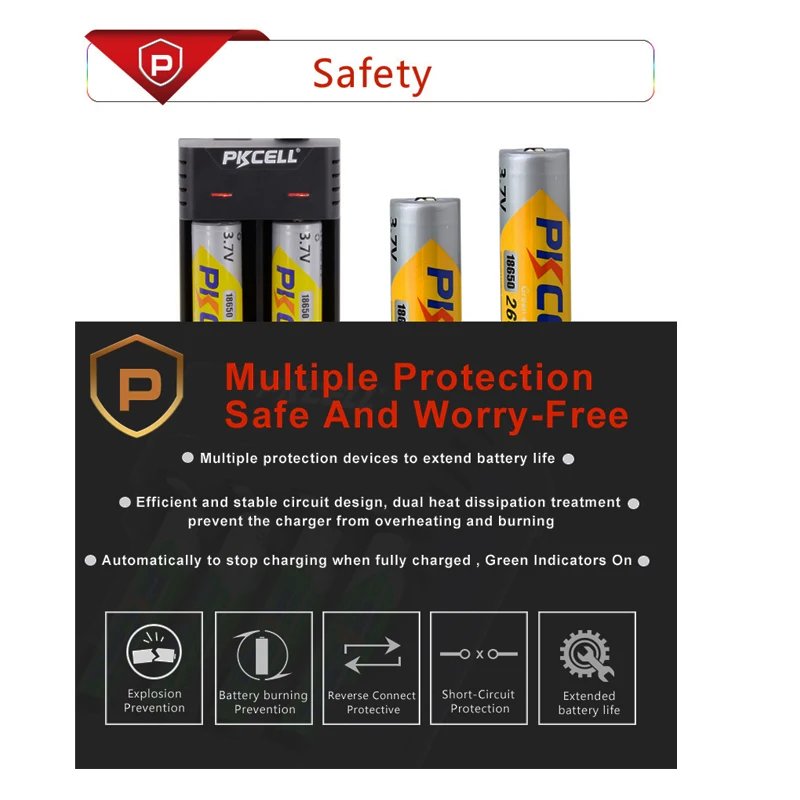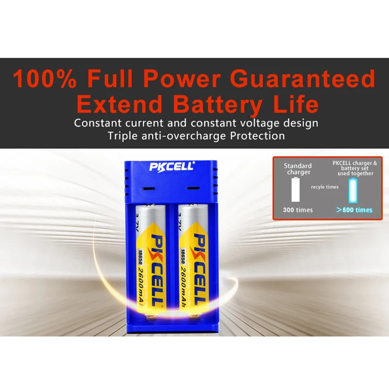 PKCELL Зарядное устройство зарядки 3,7 V зарядное устройство для никель-кадмиевых или никель-металл-AAA 18650 26650 16650 18350 18500 литий-ионная аккумуляторная батарея Зарядное устройство USB 5В 2A 2 слота и 2 шт. ICR10440