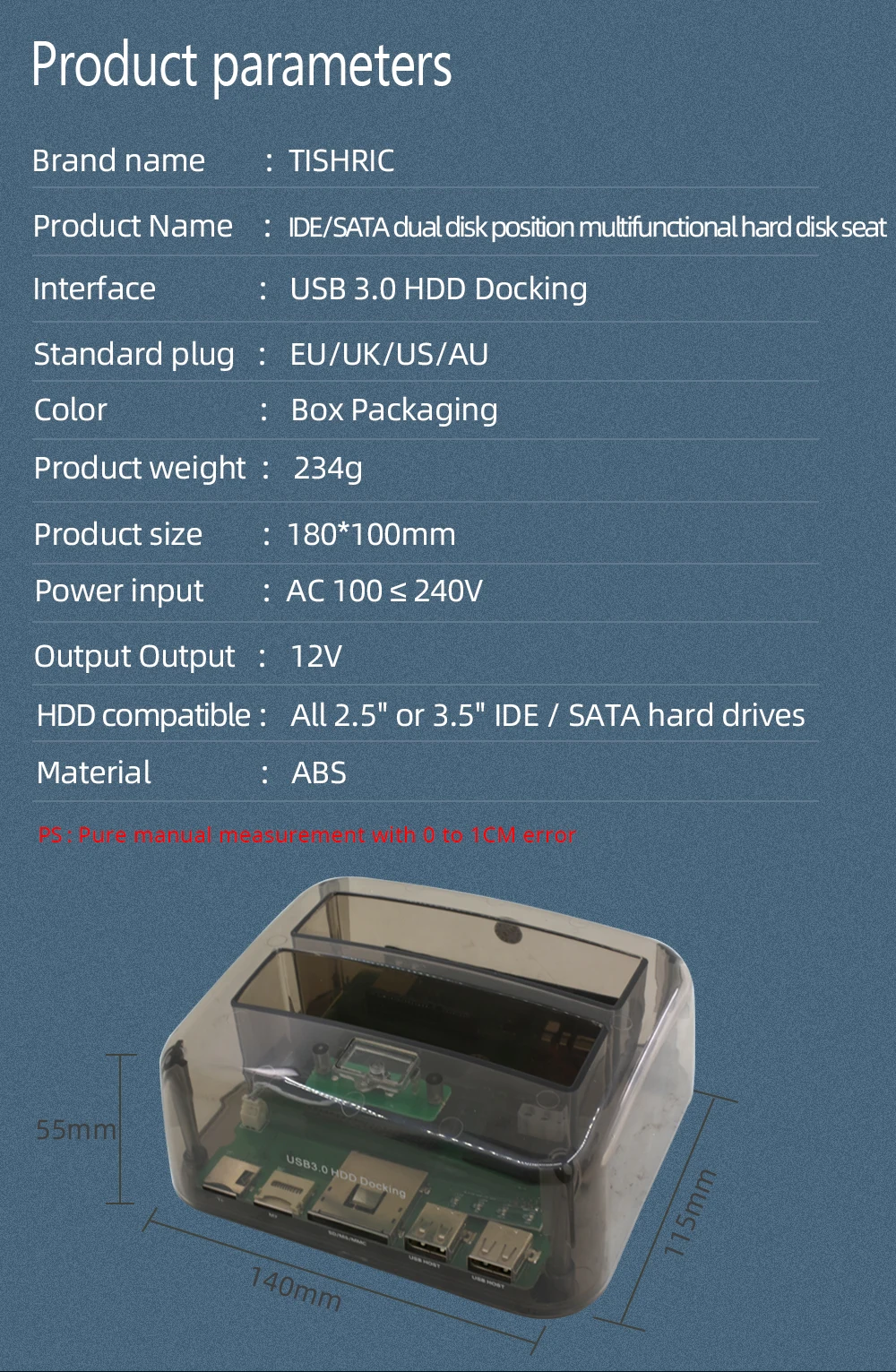 Док-станция для жестких дисков TISHRIC IDE SATA 2 в 1, док-станция для жестких дисков, чехол для жесткого диска 2,5 3,5 дюйма SSD USB 2,0