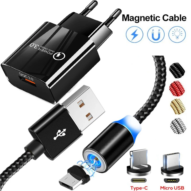 QC 3,0 быстрое зарядное устройство для Lenovo K3 K6 Note K10 S1 lite P2 A1010 A2010 A2020 Z5 Z5S Z6 Pro Магнитный кабель Micro USB Type C
