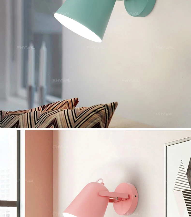 Настенный светильник PHYVAL, светодиодный светильник в скандинавском стиле, настенный светильник s E27, настенные светильники Макарон Для прикроватной тумбочки