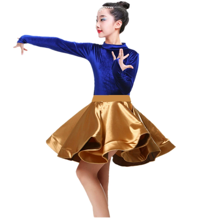 Новые Детские Бархатный латинский танцевальные платья для девочек Одежда для спортивной гимнастики костюм для сальсы Танго бальная юбка для девочек