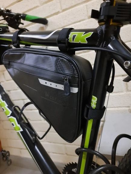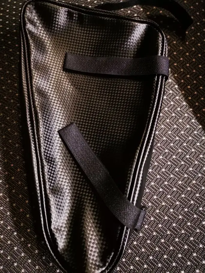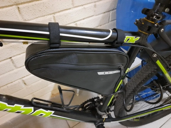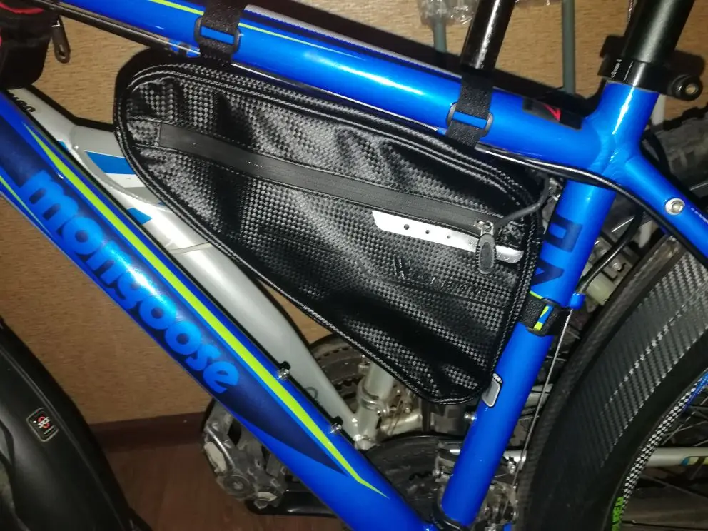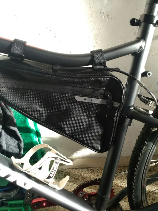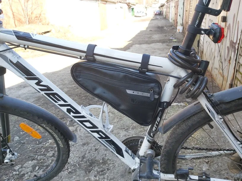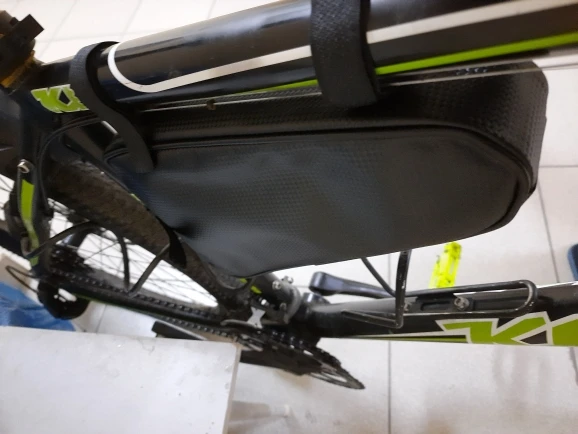 Сумка сшита очень хорошо, материал: ткань с пластиком(с запахом, но не сильным), липучки длинные. Обьём сильно преувеличен, заявленных 3 литров, там и в помине нет. Сами посчитайте. На раму села как "влитая". Главное чтоб износостойкая была. Будем катать.