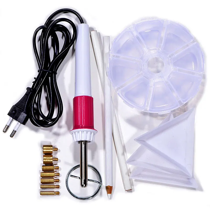 заказ пришел за 3 недели. Нагреваеться быстро, клеить стразы еще не пробовала.В подарок положили пакетик маленьких чёрных страз.Но не положили металлическую подставку,поэтому 4 звезды. С продавцом не общалась.