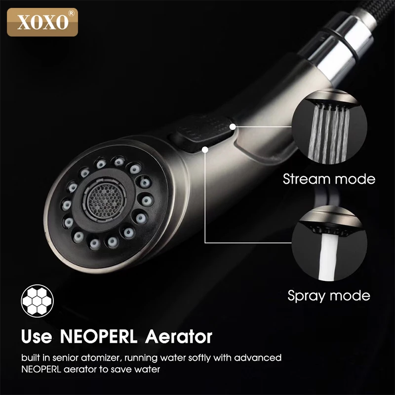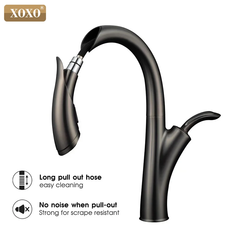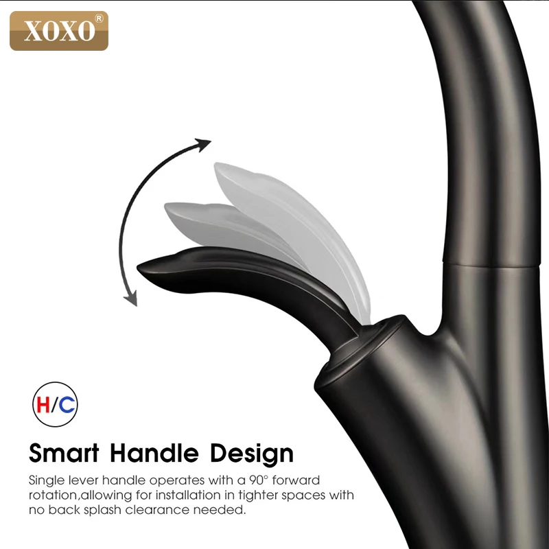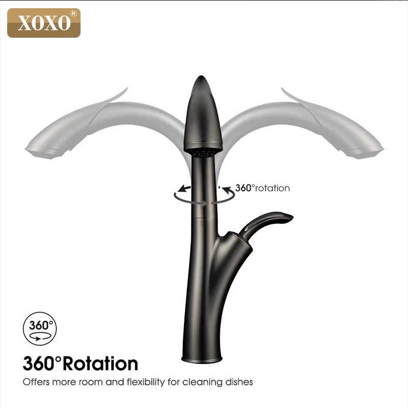 Кухонный Смеситель XOXO, кухонный кран для холодной и горячей воды, черный, одно отверстие, одна ручка, поворот на 360 градусов, смеситель для воды, 83039