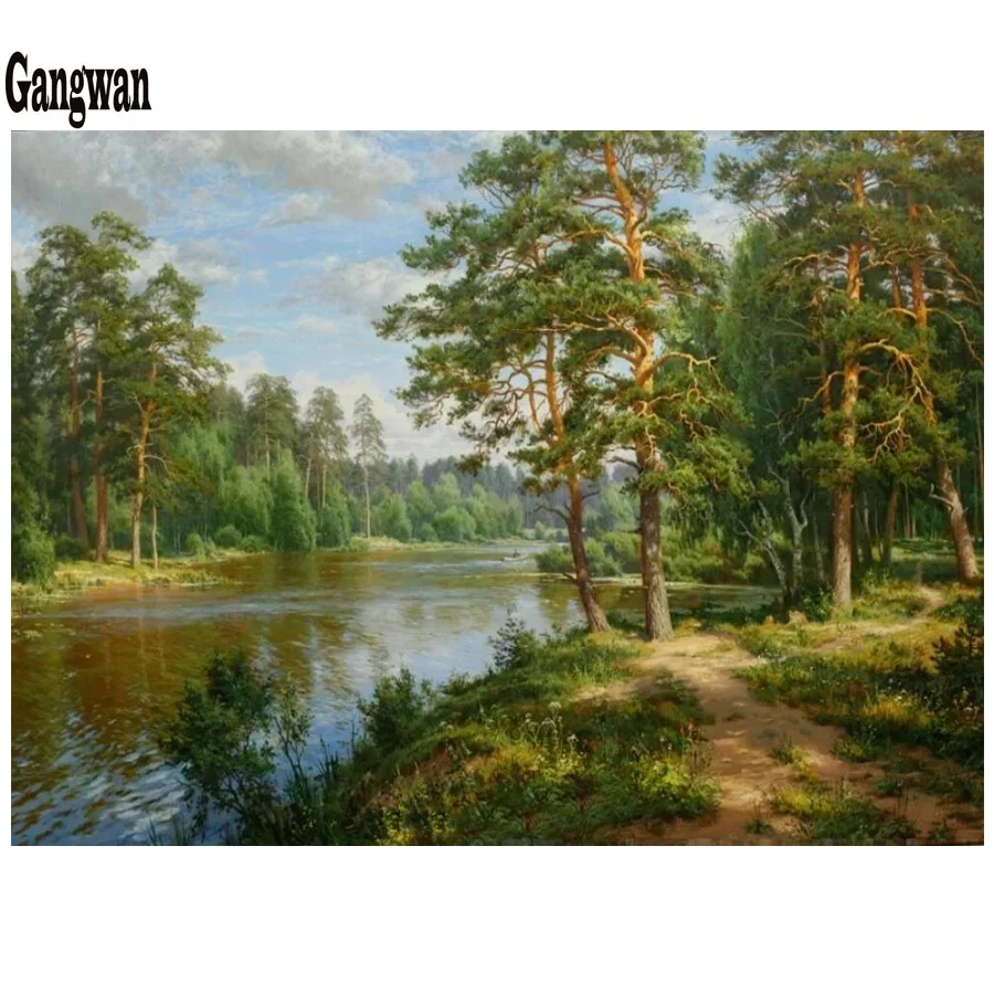 Алмазная вышивка природный пейзаж 5D, квадратная круглая алмазная живопись "Весеннее дерево, озеро", узоры, мозаичная живопись, стразы