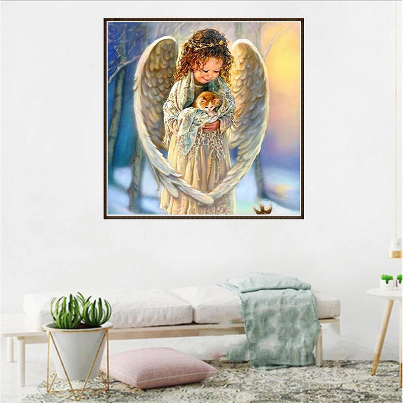 Алмазов картина ангел с котиком для девочки, Алмазная мозаика, алмазная вышивка картина Алмазная вышивка DIY Европа ремесла