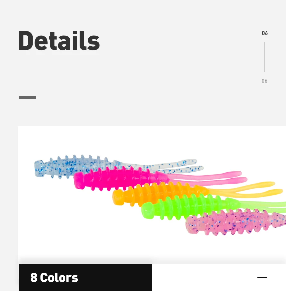 Длина: 48 мм Вес: 0,44 г Цвет: 8 цветов цвет s Кол-во: 20 шт. Материал: TPR действие: плавающий