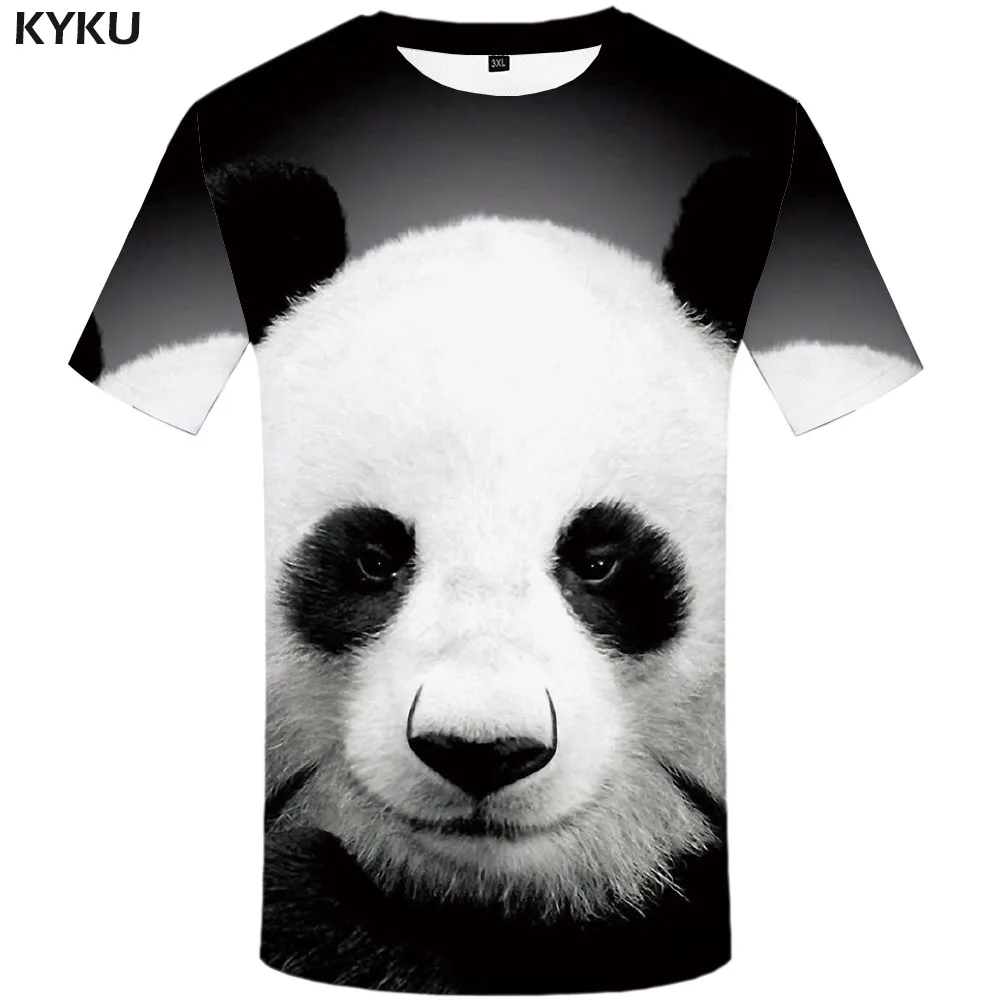 KYKU Panda футболка для мужчин, с принтом животных, забавная, черно-белая, аниме одежда, китайская, повседневная, мужская одежда