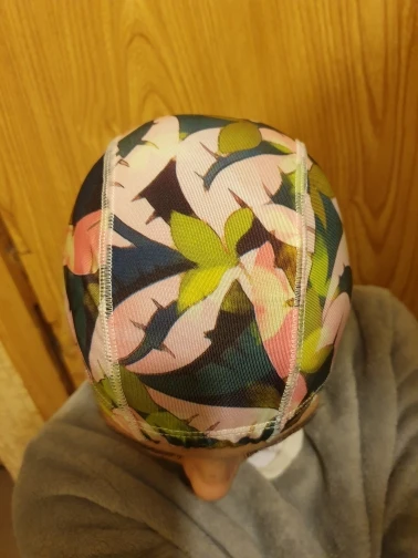 Шапочка пришла красного цвета.Заказывали абсолютно другую(голубая с пятнами).На голову одеть конечно можно,но не то.........