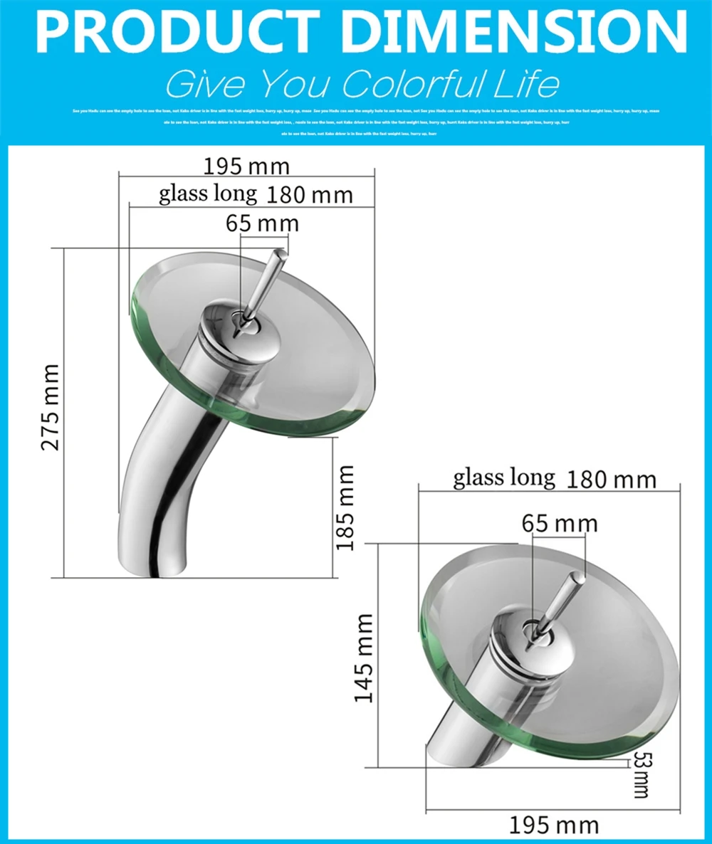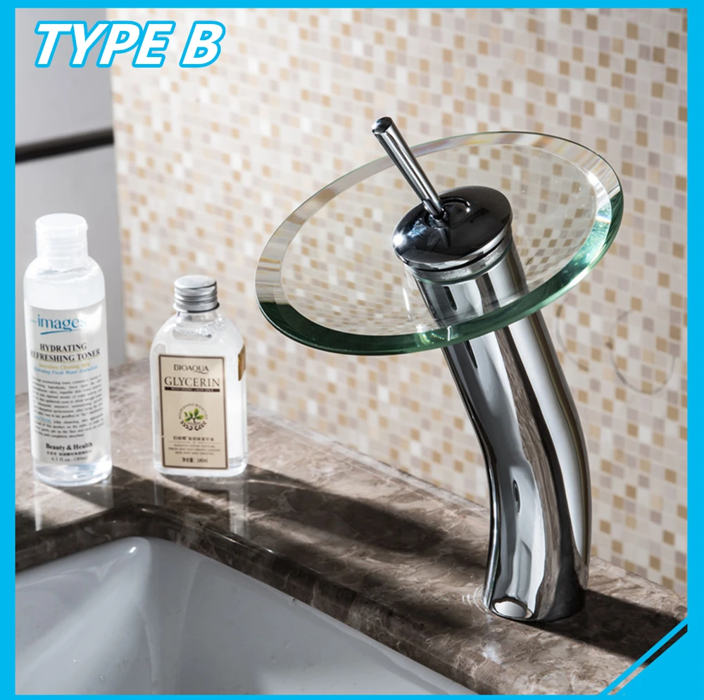 Смеситель для ванной из латуни, кран Водопад с кран горячей и холодной воды отверстием для раковины, из круглого стекла