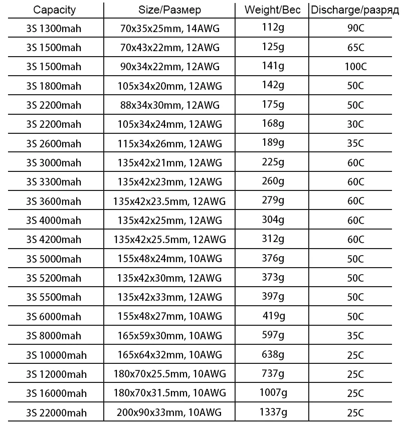 Не перезаряжайте более 4,2 в и не разряжайте более 3,7 вРазъем-штепсельная вилка T/Deans.