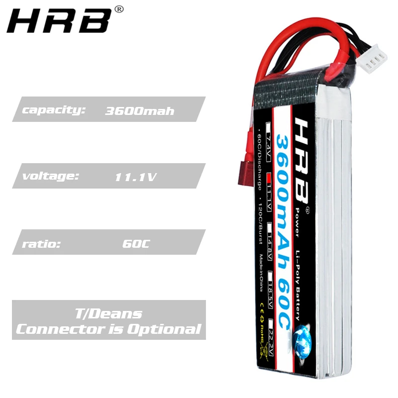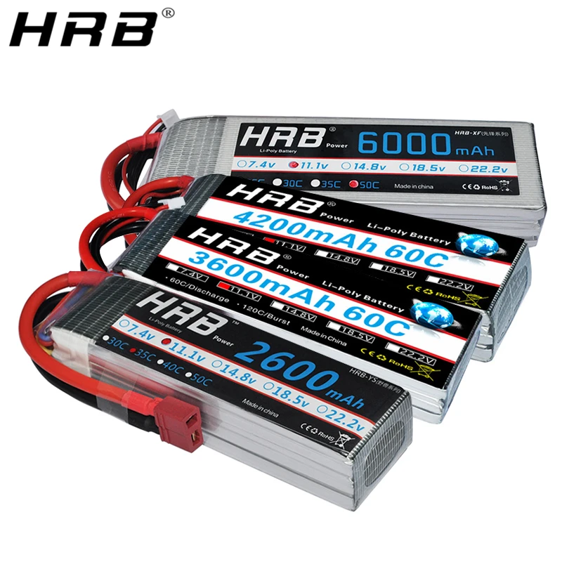 Литий-полимерный аккумулятор HRB 3S, 11,1 В, 1800 мАч, 2200 мАч, 2600 мАч, 3300 мАч, 4000 мАч, 5000 мАч, 5200 мАч, 6000 мАч, запчасти для радиоуправляемых моделей T Deans 50C