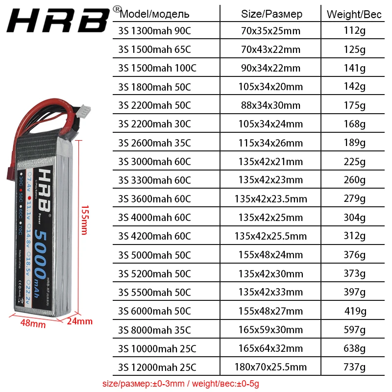 Аккумулятор HRB 6S XT60 22,2220018002600330040005000600010000120001...